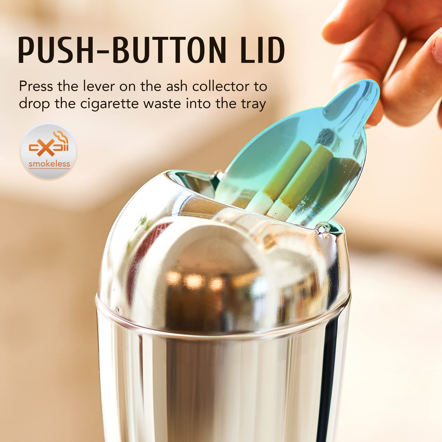 - Original Ashtrays – Adjustable Outdoor Floor Standing Ashtray, Outside Patio Cigar Ashtrays for Cigarettes, Contemporary Windproof Receptacle Stand Ashtray with Lid, 20, 27.5, 35 Heights, Stainless Steel (Chrome) by CO-Z