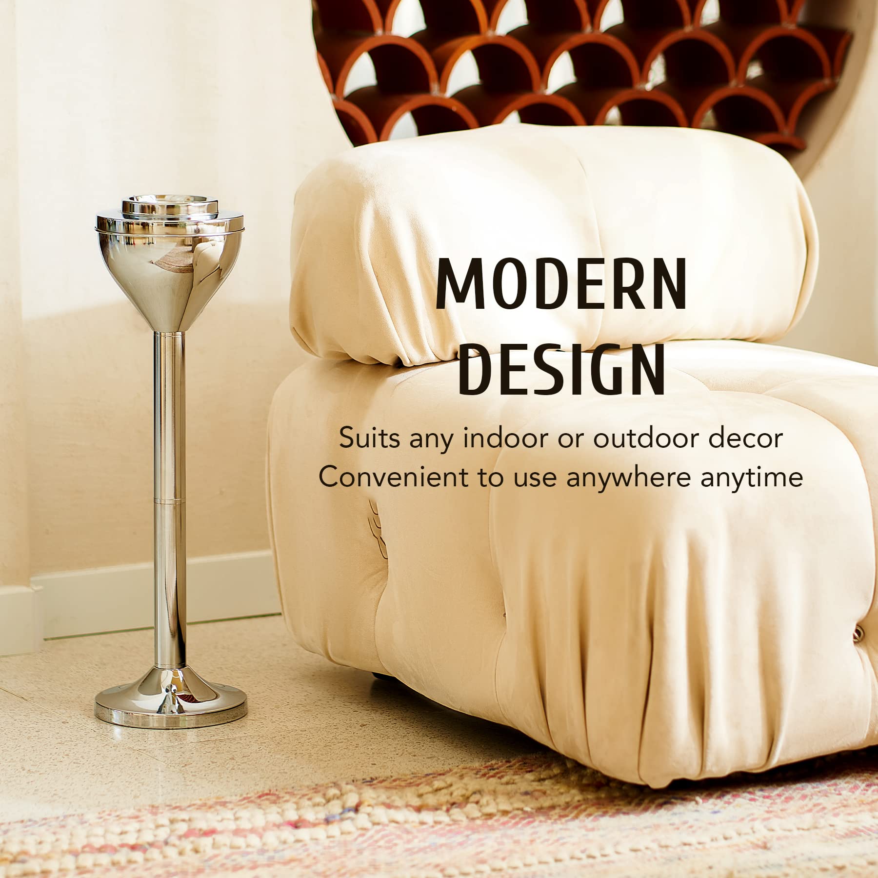 - Original Ashtrays – Ashtray with Lid, Smokeless Standing Outdoor Ashtray for Home Garden Patio Cigarettes Ash Butt Disposal, 24or 16.5 Stainless Steel Windproof Stand Outside Cigar Container Ash Tray, Chrome by CO-Z