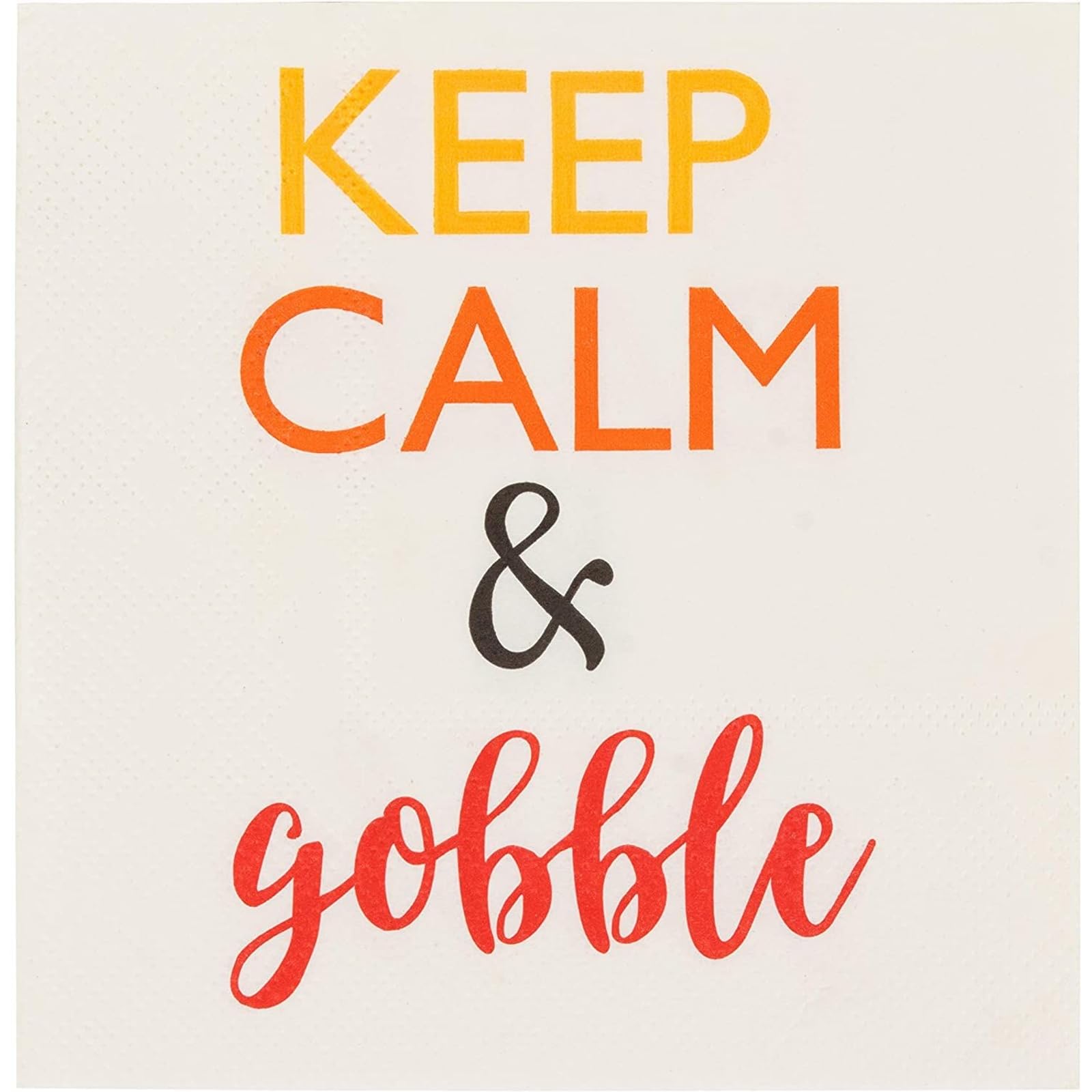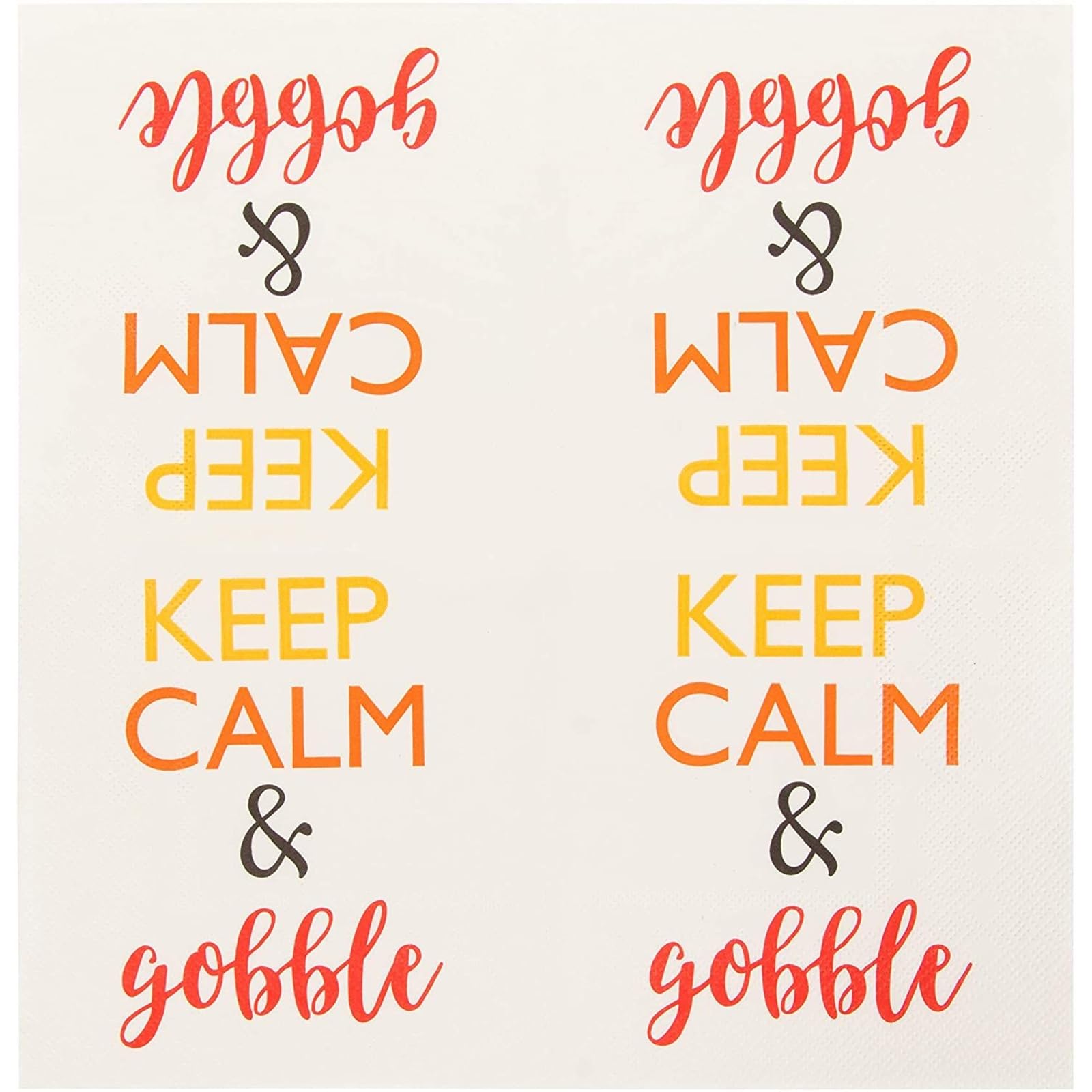 - SET INCLUDES: 100 highly absorbent 3-ply party napkins made from paper featuring Keep Calm and Gobble in autumn colors of yellow, orange and red printed on all 4 sides; gobble until you wobble on Thanksgiving!