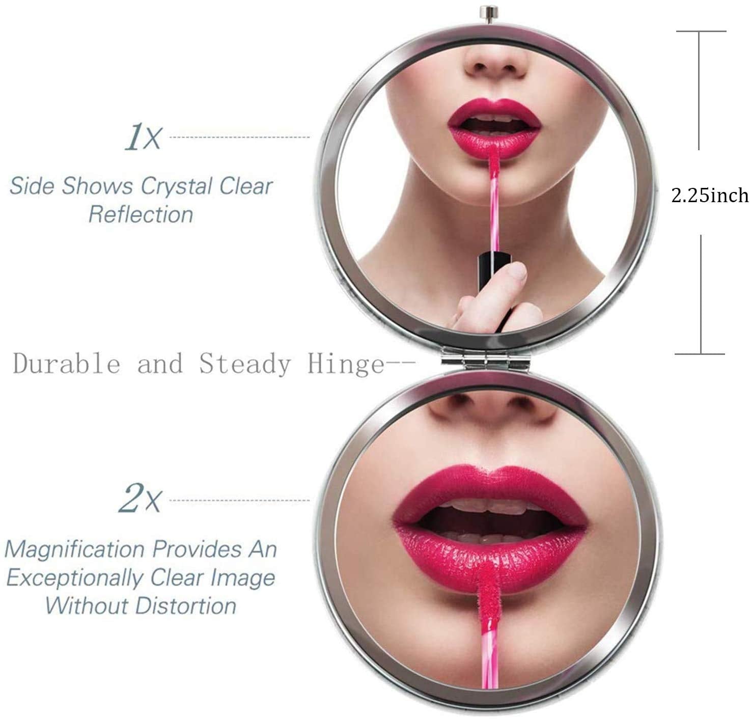 - DOUBLE-SIDED MIRROR:1× Side shows crystal clear reflection, another side is 2× magnification, provide more details on your face, ensuring you do a professional perfect makeup, take care of every beauty detail.