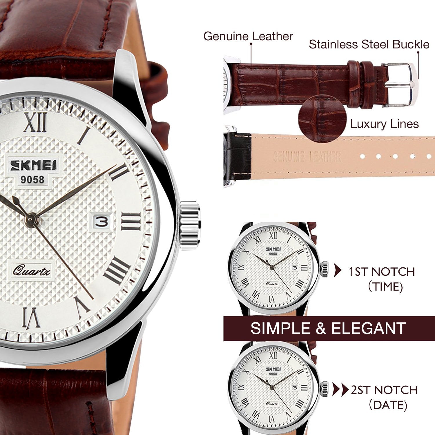 - ELEGANT DESIGN WATCH FOR DAILY USE - Hardened Stainless Steel case will never fade, working sub-dials,water resistant casing, luxury genuine leather watch strap, hardened scratch resistant glass for maximum protection. This minimalistic, smart classic design watch will suit any occasion or outfit.this beautiful leather watch will not only suit any occasion or outfit, but become a valuable addition you can't go without.