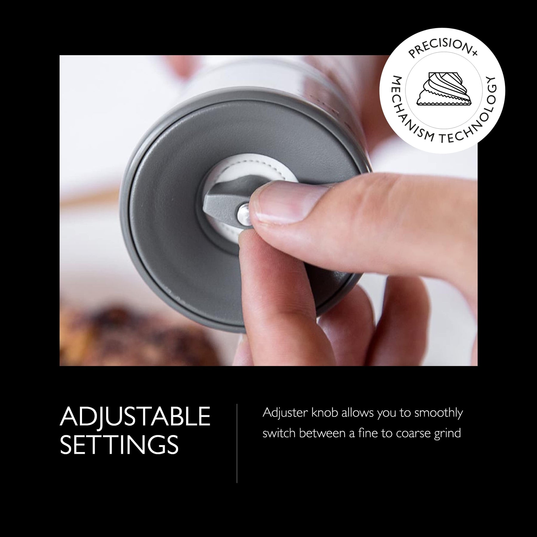 - Adjustable Salt & Pepper Mills: Twist knobs to tighten or loosen mech for a finer or coarser grind