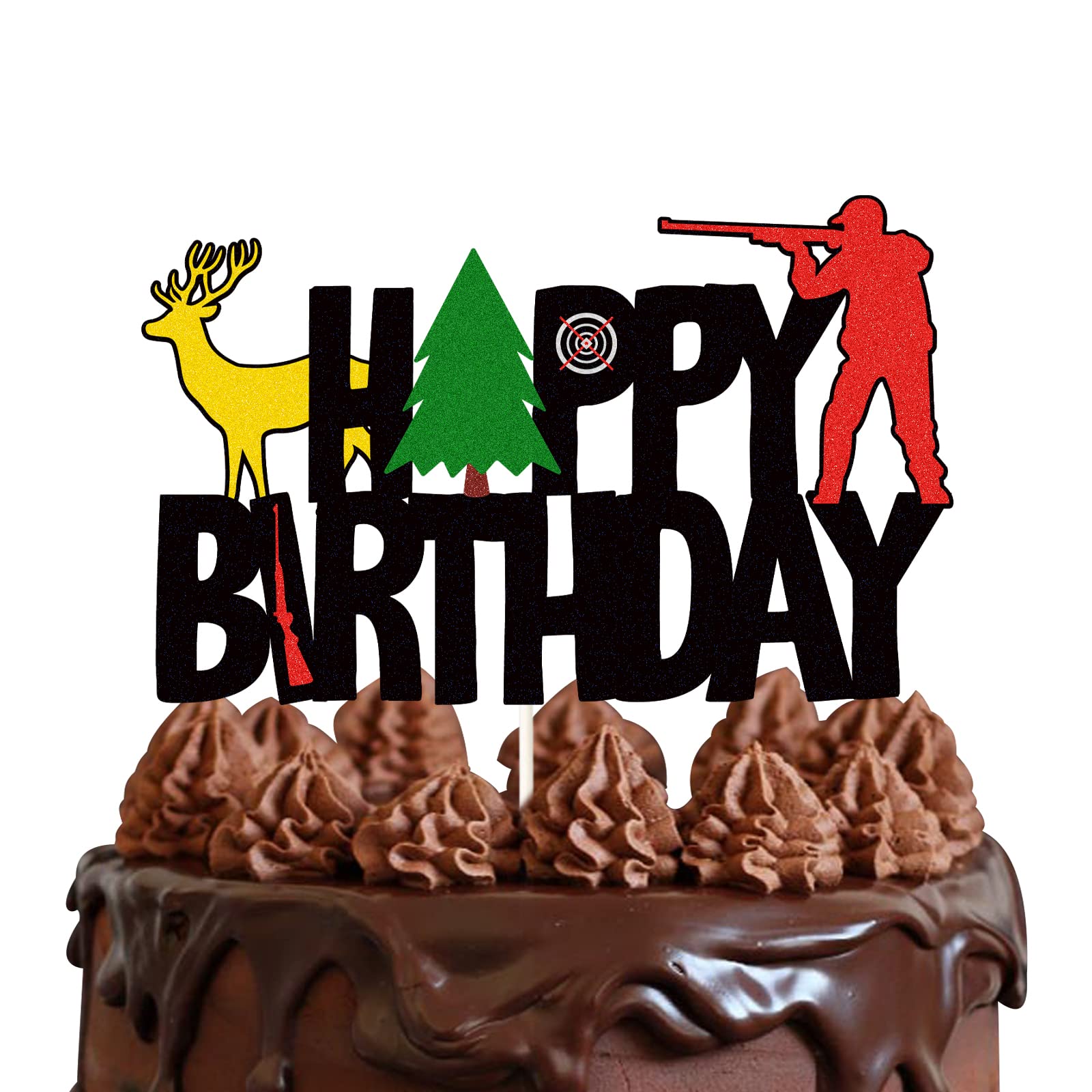 - Original Edible Cake Toppers – Colorful Glitter Hunting Theme Happy Birthday Cake Topper,Gone Hunting Hunter Camping Themed Cake Decor,Kids Boy Girl Men Happy Birthday Party Supplies by LECAKTO
