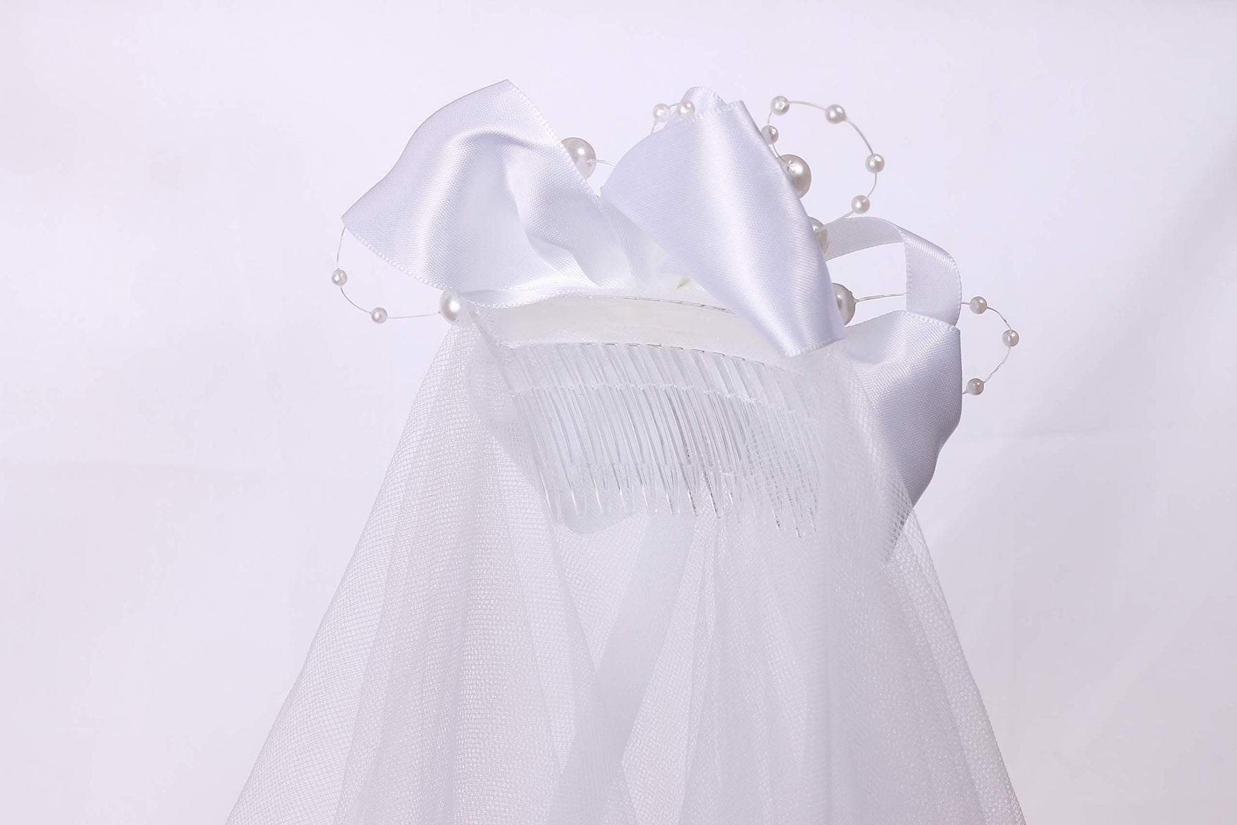 - Original First Communion Veils – Flower Girls White First Communion Veil Headband with Bow (60cm/24 inch, Bead bowknot) by Colorful House