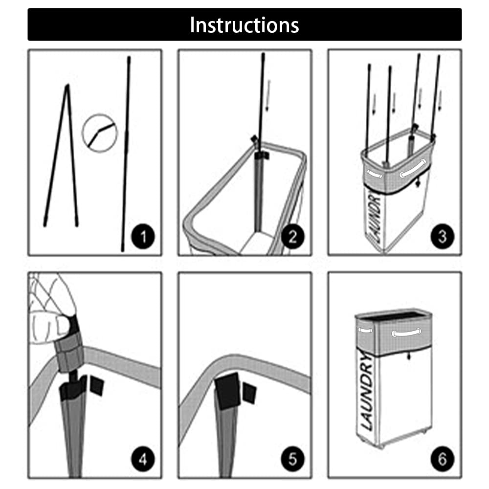 - WHAT YOU GET: 1 pcs Rolling Slim Laundry Hamper, 4 pcs Support Rods and friendly customer service. TIPS: If you find the fabrics a bit wrinkles, don't worry, you can make it flat simply by steam iron.