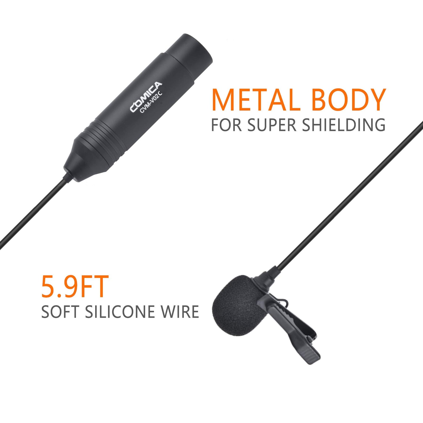 - Durability and Adjustability 5.9-foot soft silicone wire for comfortable touch feeling and easy to adjust. you can walk around without unplugging the mic and record authentic and clear sound at the same time.