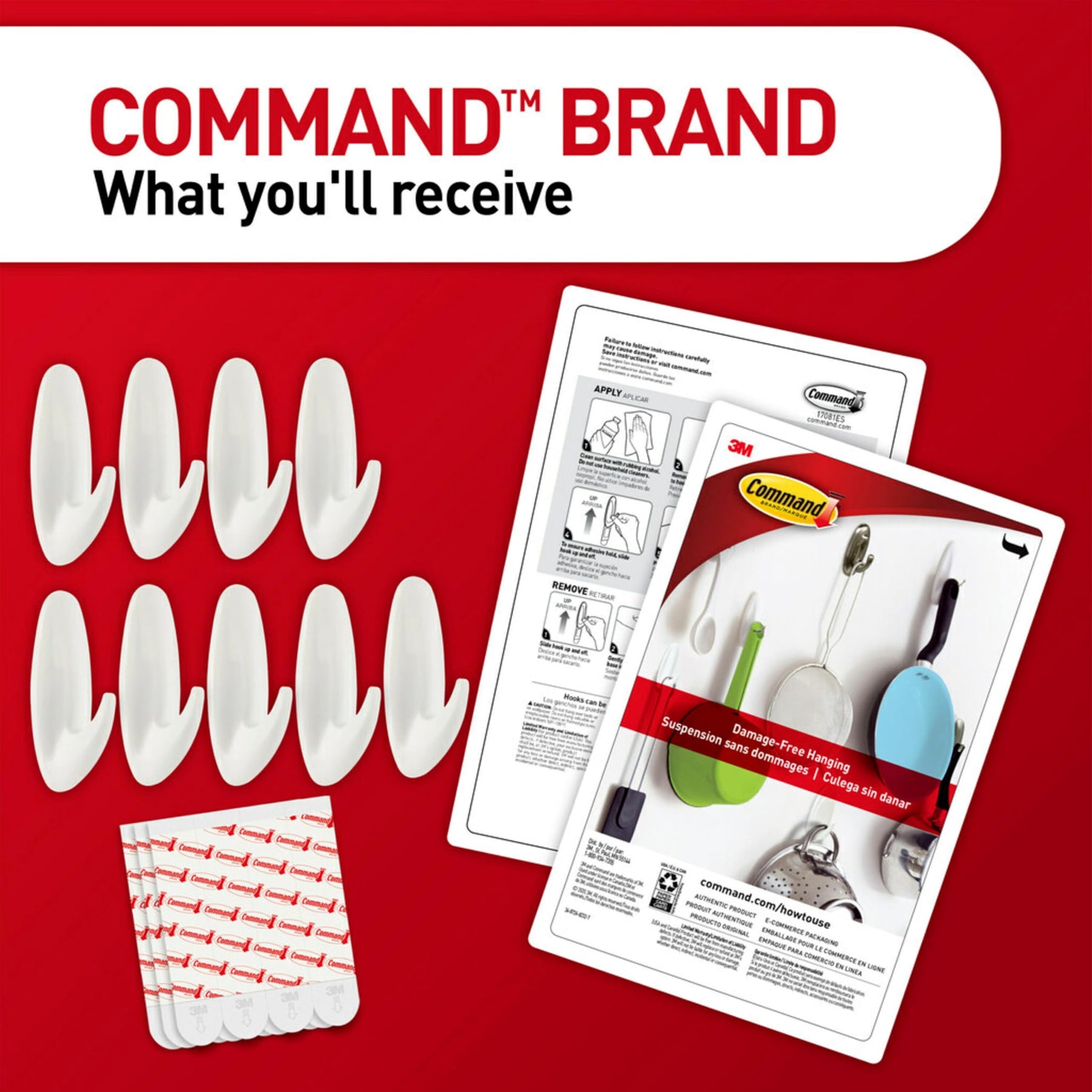 - ORGANIZE DAMAGE-FREE - Say goodbye to holes, marks, or sticky residue on your walls, doors, cabinets, or closets; Command Hooks by 3M are easy to use and help keep your walls looking beautiful