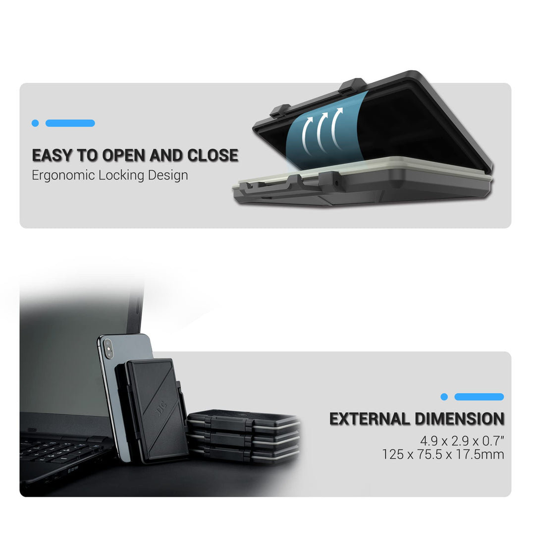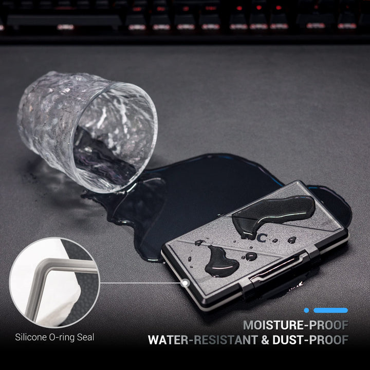 - WATER-RESISTANT & ANTI-SHOCK:High quality PC material,The memory card case sealing ring is made of advanced silicone.If your backpack is wet by rain, water resistant is the key.