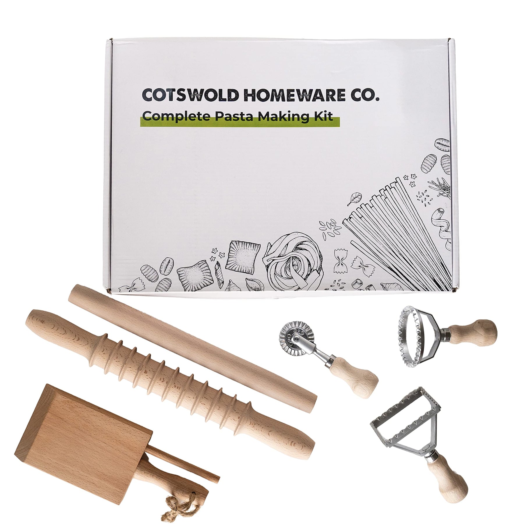 - Original Manual Pasta Makers – Complete 6 Pcs Pasta Making Tool Set Includes Two Ravioli Stamp Maker Cutter And Roller Wheel Set, Two Pasta Rolling Pins, Gnocchi Board By by Cotswold Homeware Co