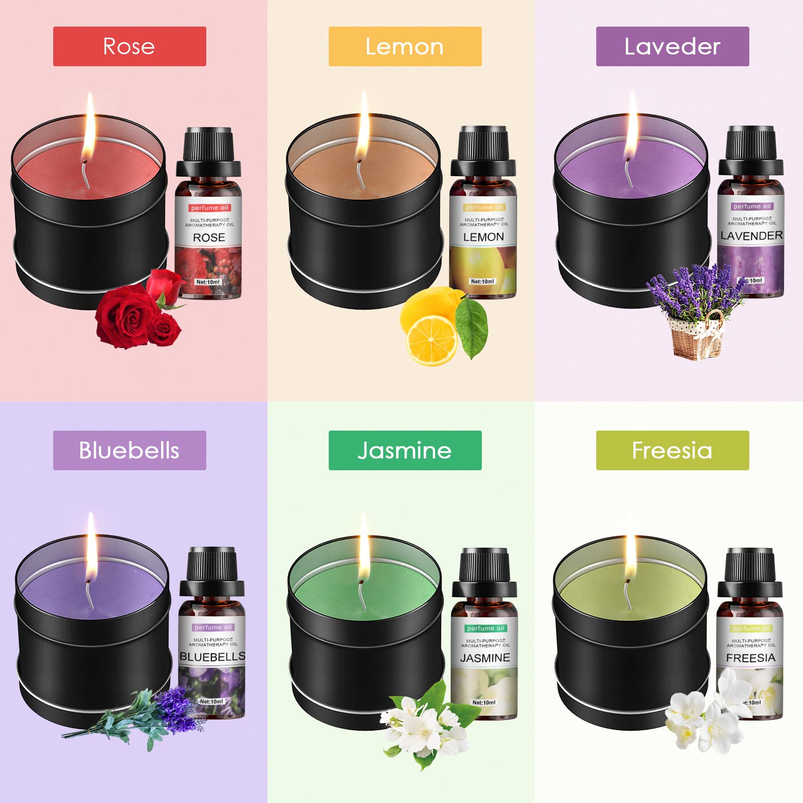 6 x candle essential scents(Lavender essential oil+Rose essential oil+Lemon essential oil+Jasmine essential oil+Freesia essential oil+Bluebells essential oil),