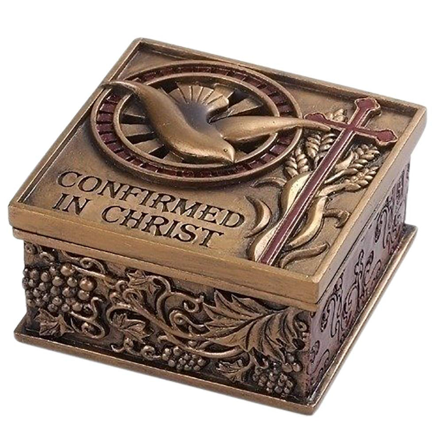 - Original Decorative Boxes – Confirmed In Christ Dove Bronze Tone 2.75 x 2.75 Resin Stone Memory Trinket Box by Roman