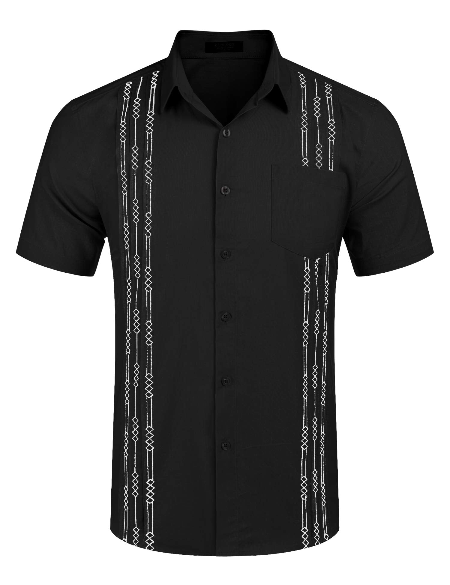 - Original Button-Down Shirts – Guayabera Shirts for Men Dress Shirt Short Sleeve Summer Linen Beach Shirt Black by COOFANDY