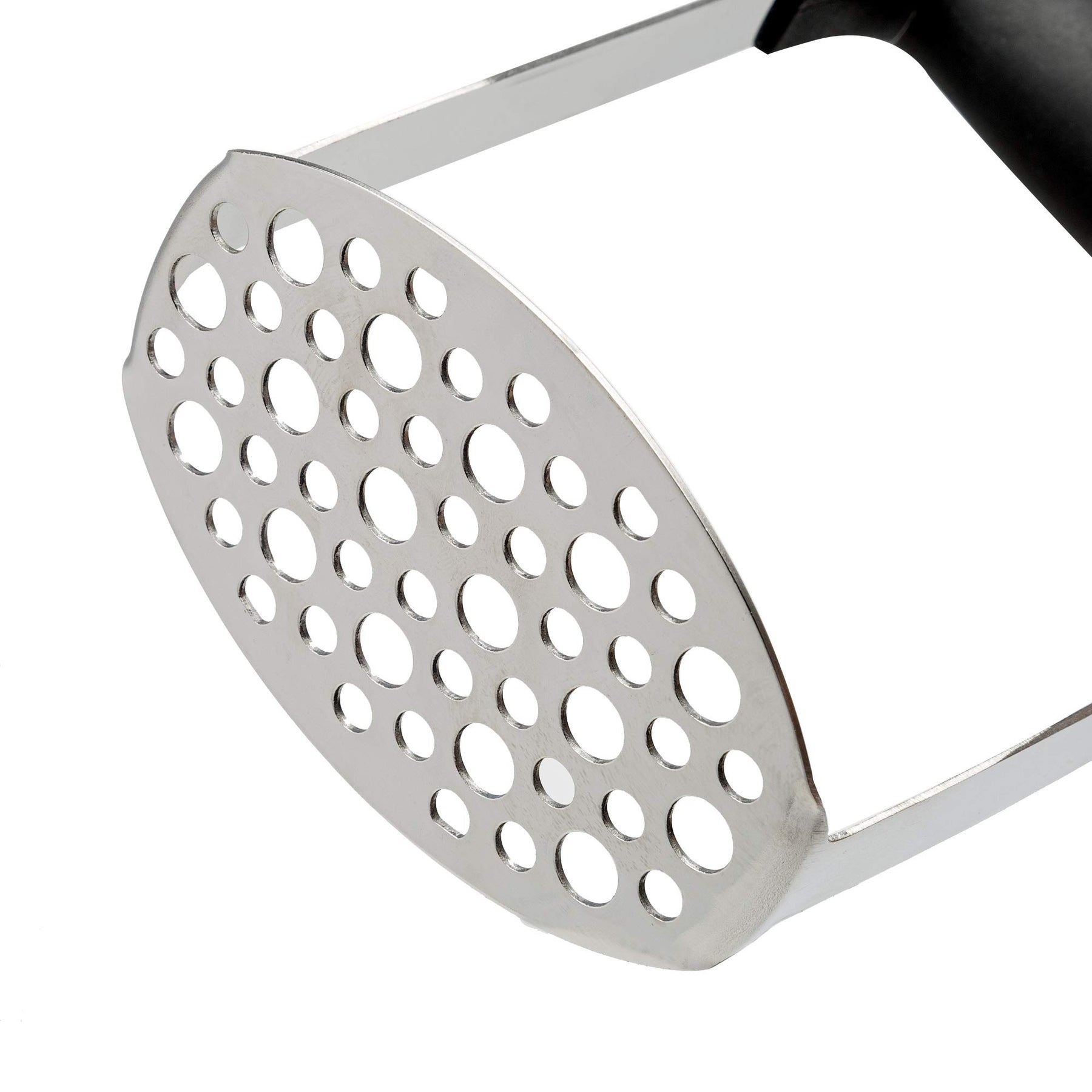 - Original Potato Mashers – Heavy Duty Stainless Steel Masher, Broad and Ergonomic Horizontal, Fine Plate for Smooth Mashed Potatoes, Soft Grip and Non-Slip Handle, Black by Cooking Light