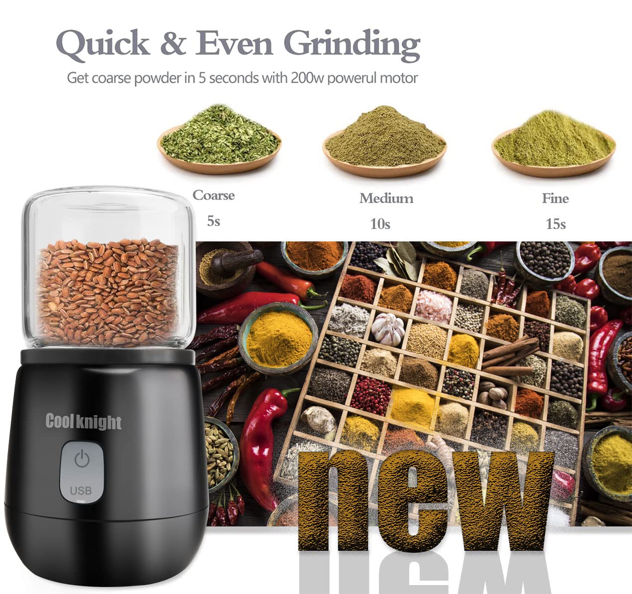 - Original Herb & Spice Mills – Electric Herb Grinder Electric Spice Grinder, USB Rechargeable 200W Cordless Electric Herb Grinder for Herbs, Spices, Seeds, etc. by COOL KNIGHT