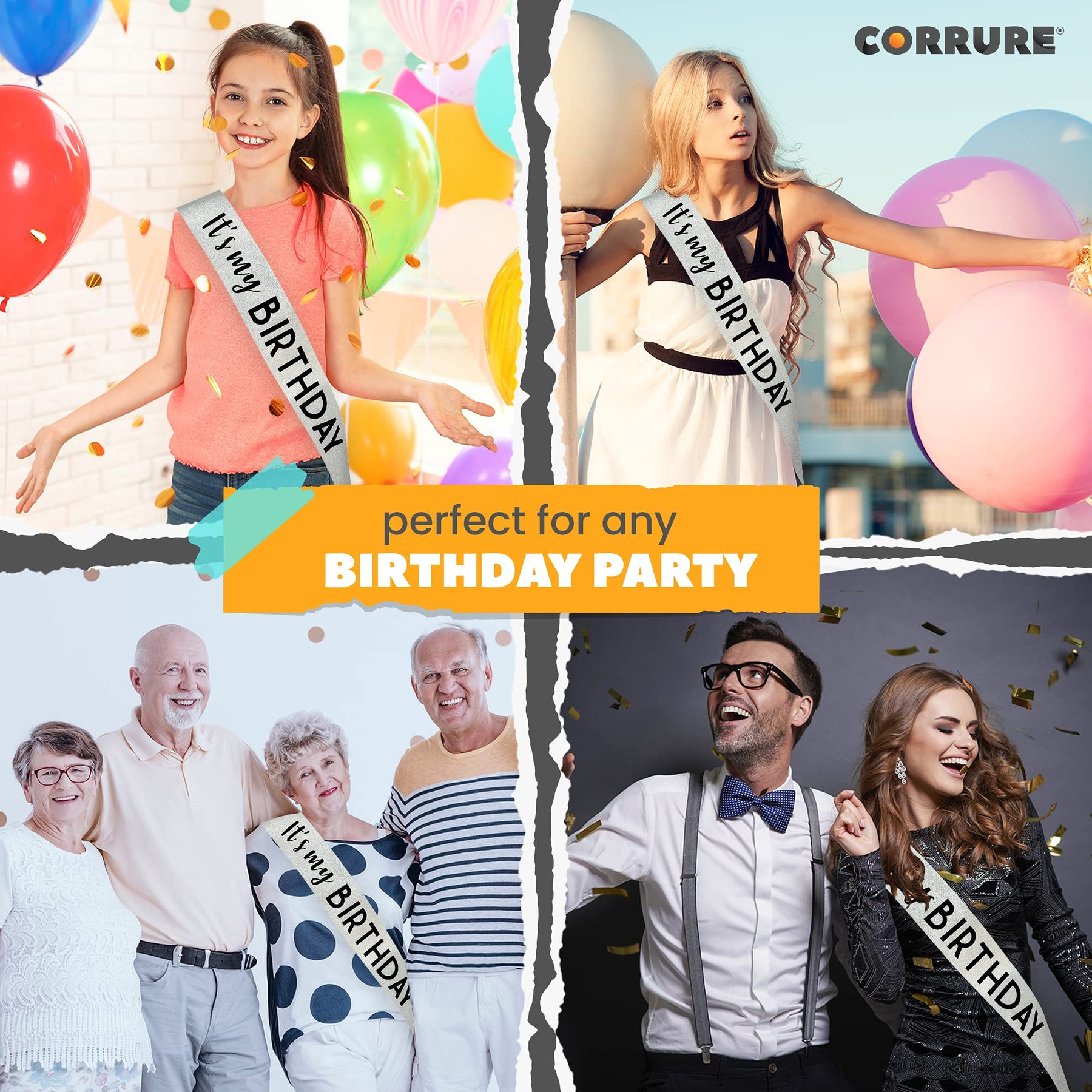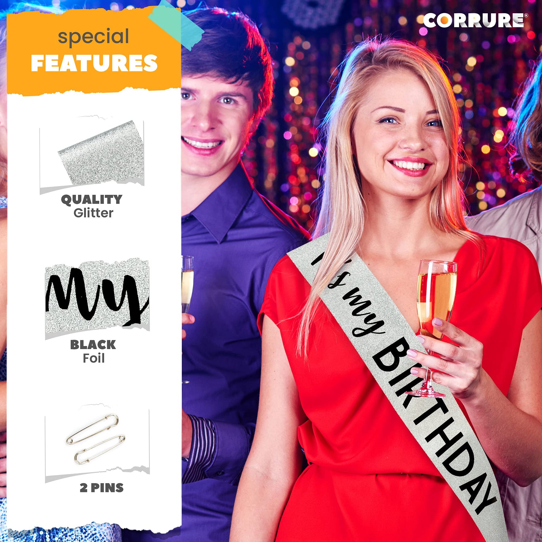 - Original Belts – 'It's My Birthday' Sash Glitter with Black Foil - Silver Glitter Birthday Sash for Women and Men - Happy Birthday Sash for Girls, Sweet 16, 18th 21st 25th 30th 40th 50th by CORRURE