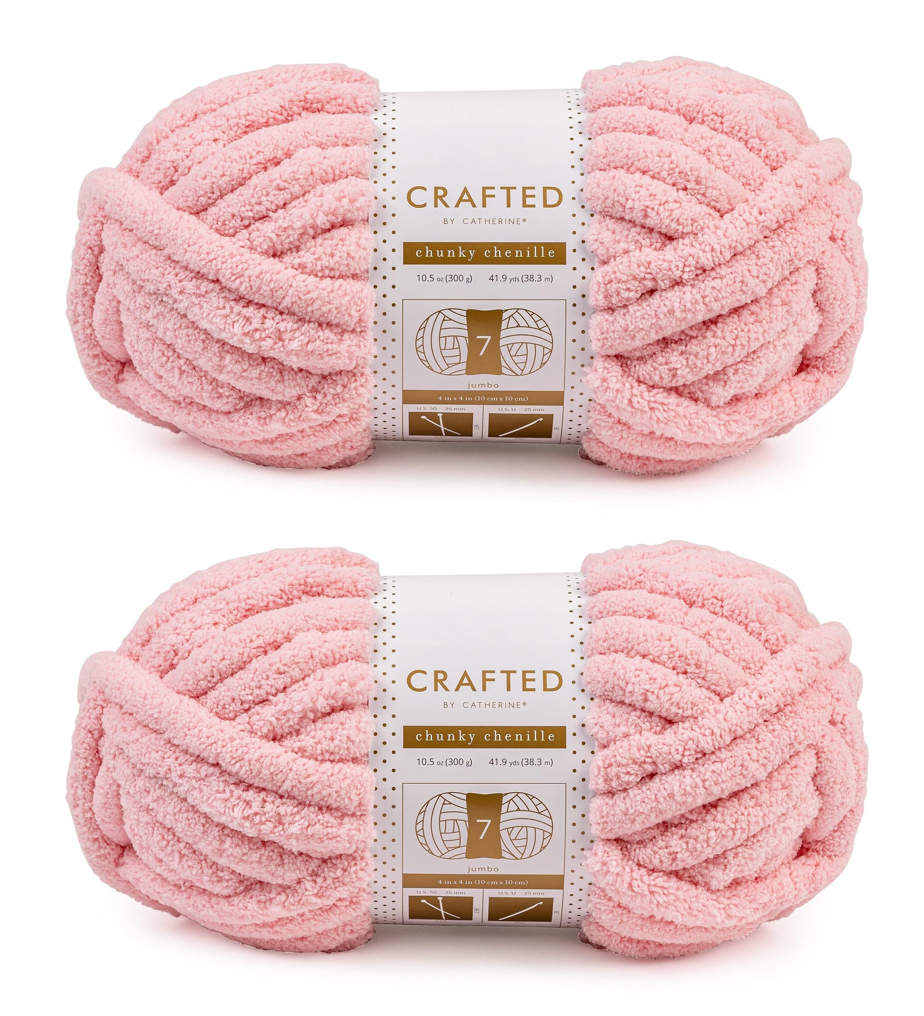 - Original Yarn – Crafted By Catherine Chunky Chenille Yarn - 2 Pack (41 Yards Each Skein), Light Pink, Gauge 7 Jumbo by Crafted by Catherine