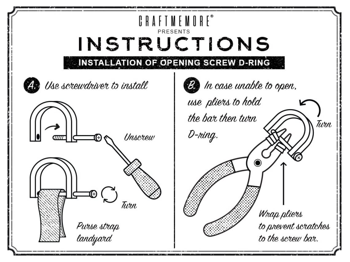 - Screw-In D-Ring - Open and close with screw bar for purse making, replacement, wallet, cases, diy craft, etc.
