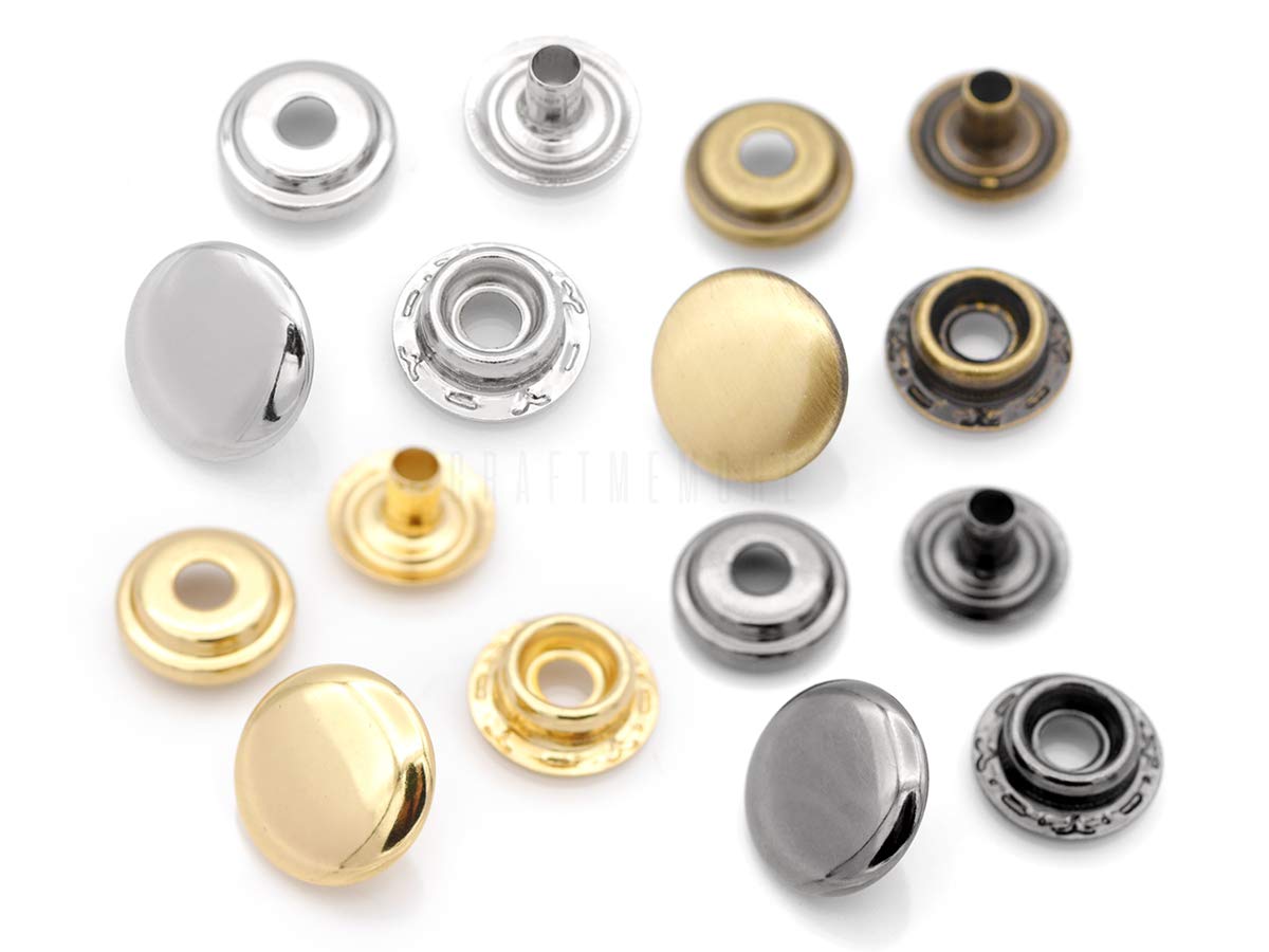 - Original Snaps – Snap Fasteners Color Plated Solid Brass Snaps Heavy Duty Press Stud Poppers Ring-Socket Button #201 VT47 Pack of 10 (15 mm, Antique Brass) by CRAFTMEMORE
