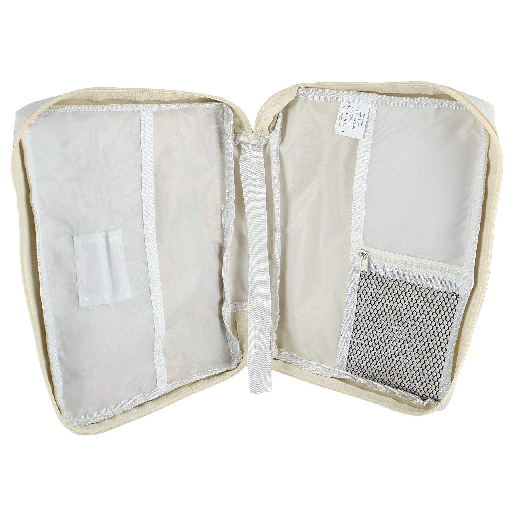 - ZIPPERED MESH POCKET: And 2 flap pockets to hold papers and other study materials or to keep bible securely in place; pen holder and attached bookmark