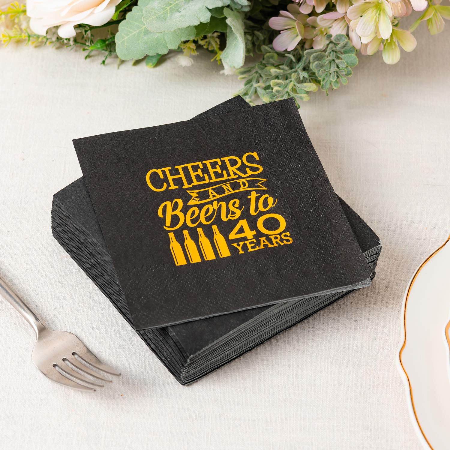 - Original Table Napkins – Crisky 40th Birthday Cocktail Napkins Black and Gold, Beverages Napkins for 40th Birthday Anniversary Decorations Cheers and Beers to 40 Years, 50 PCS, 3-Ply by crisky