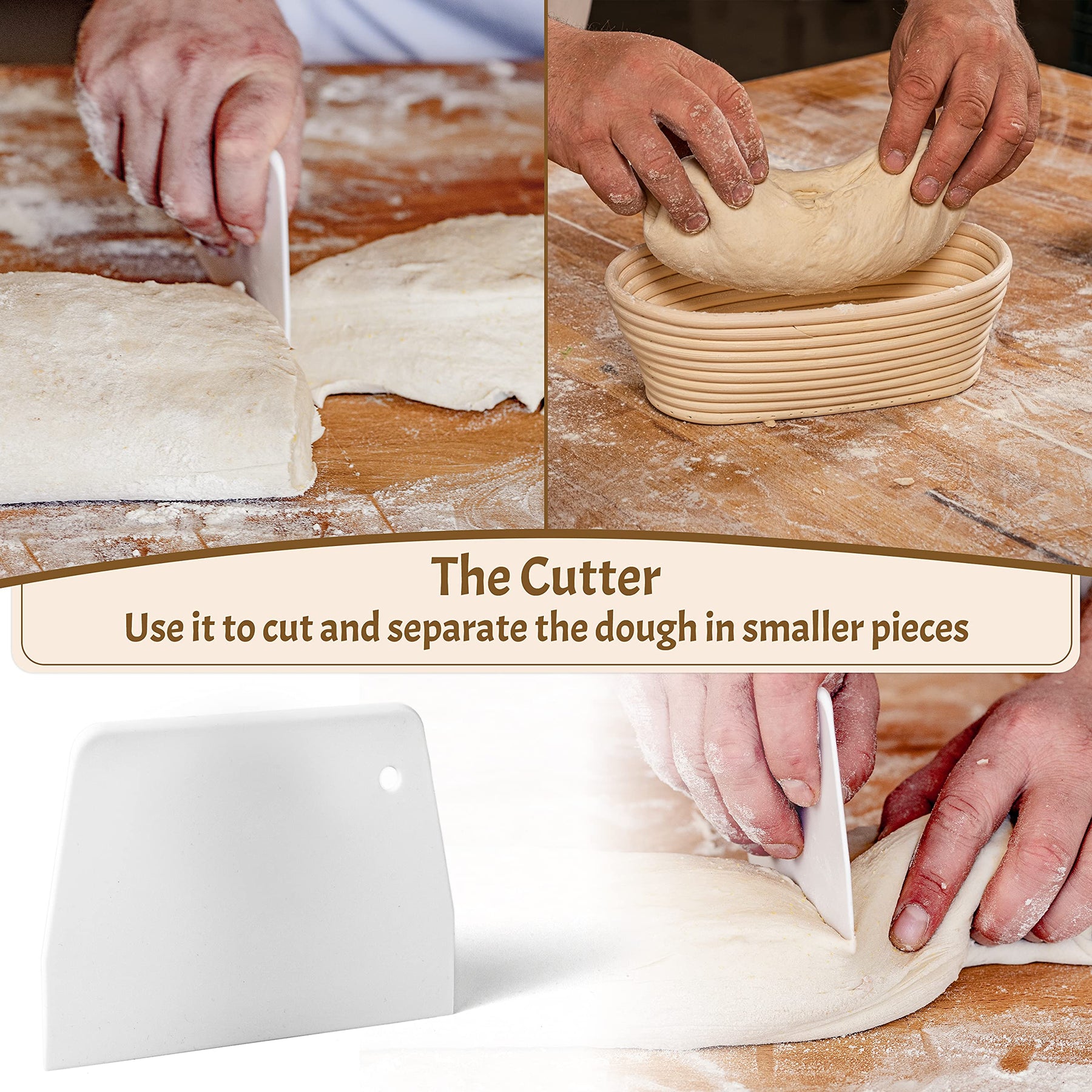 - Complete Sourdough Starter Kit: This set includes 2 oval banneton proofing baskets (10 inches in diameter x 6 inches in width x 3.2 inches in height), a liner cloth, a professional bread lame, and a dough scraper, providing all the essential sourdough bread baking supplies.