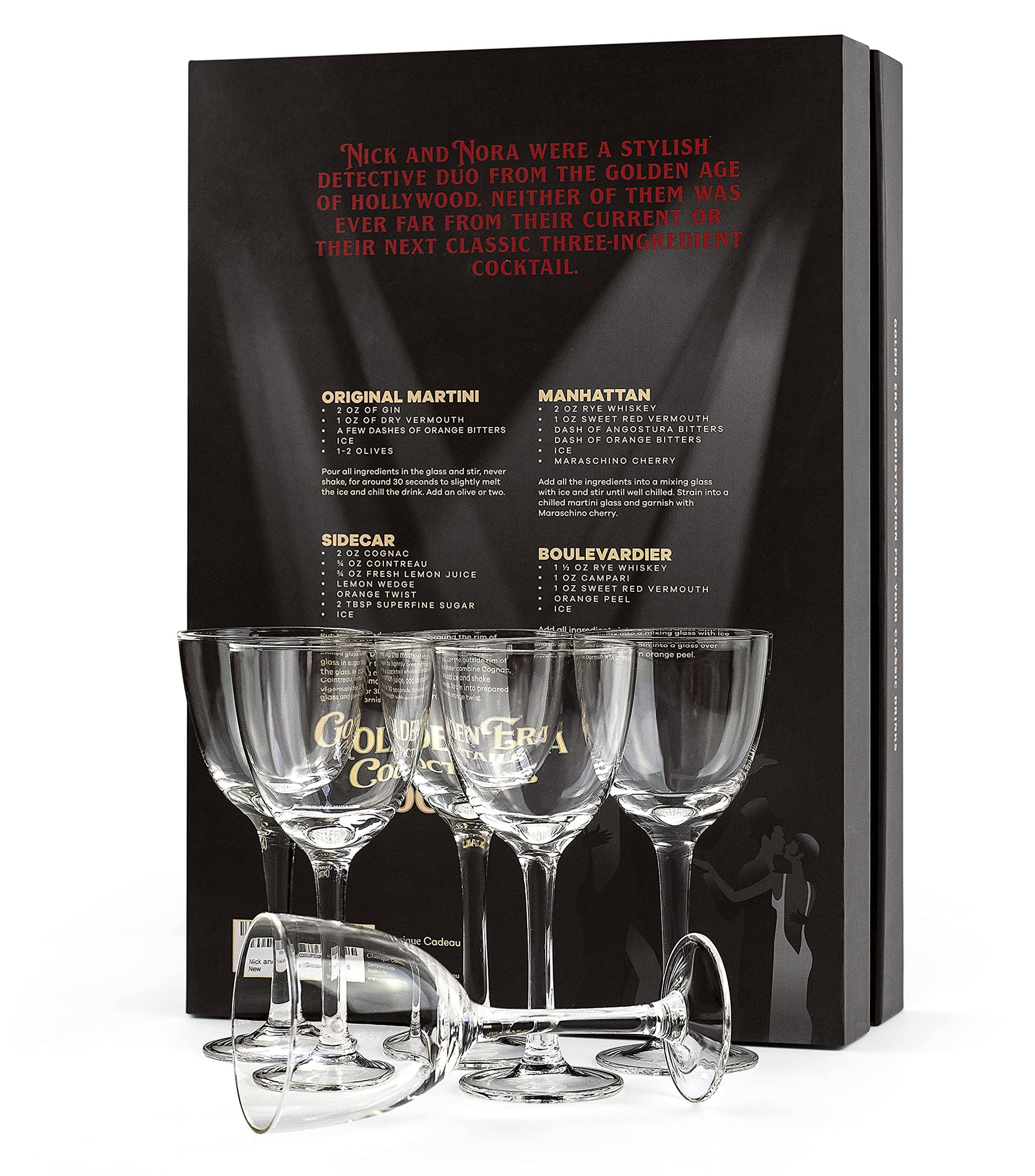 - SOPHISTICATED GIFT – every set of 6 vintage coupe glasses comes neatly packed in our luxurious black and white movies inspired gift box with a few of our favorite classic cocktail recipes on the back. Perfectly unique gift idea for wedding, engagement, anniversary, housewarming, retirement, birthday, Christmas or fabulous yourself.