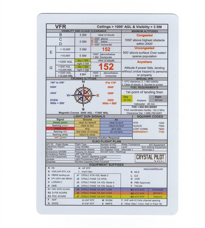 VFR-IFR Placard is made of durable plastic so it will keep its shape and won't get ruined when wet. It contains valuable information that you may need in an emergency. This Placard has been best seller since it was introduced and is useful aid for both students and CFIs.