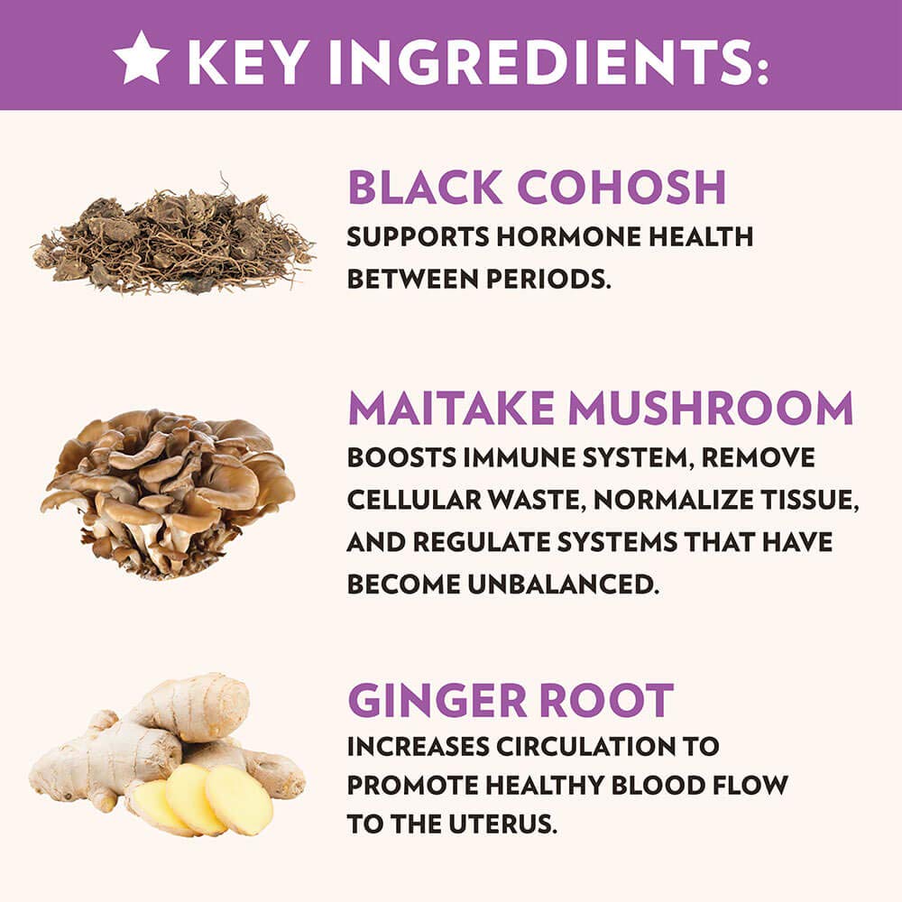 - SOOTHES CRAMPS & REGULATES PERIODS: Essential herbs, including black cohosh root and maitake mushroom, help balance your hormones and minimize discomfort from cramps.