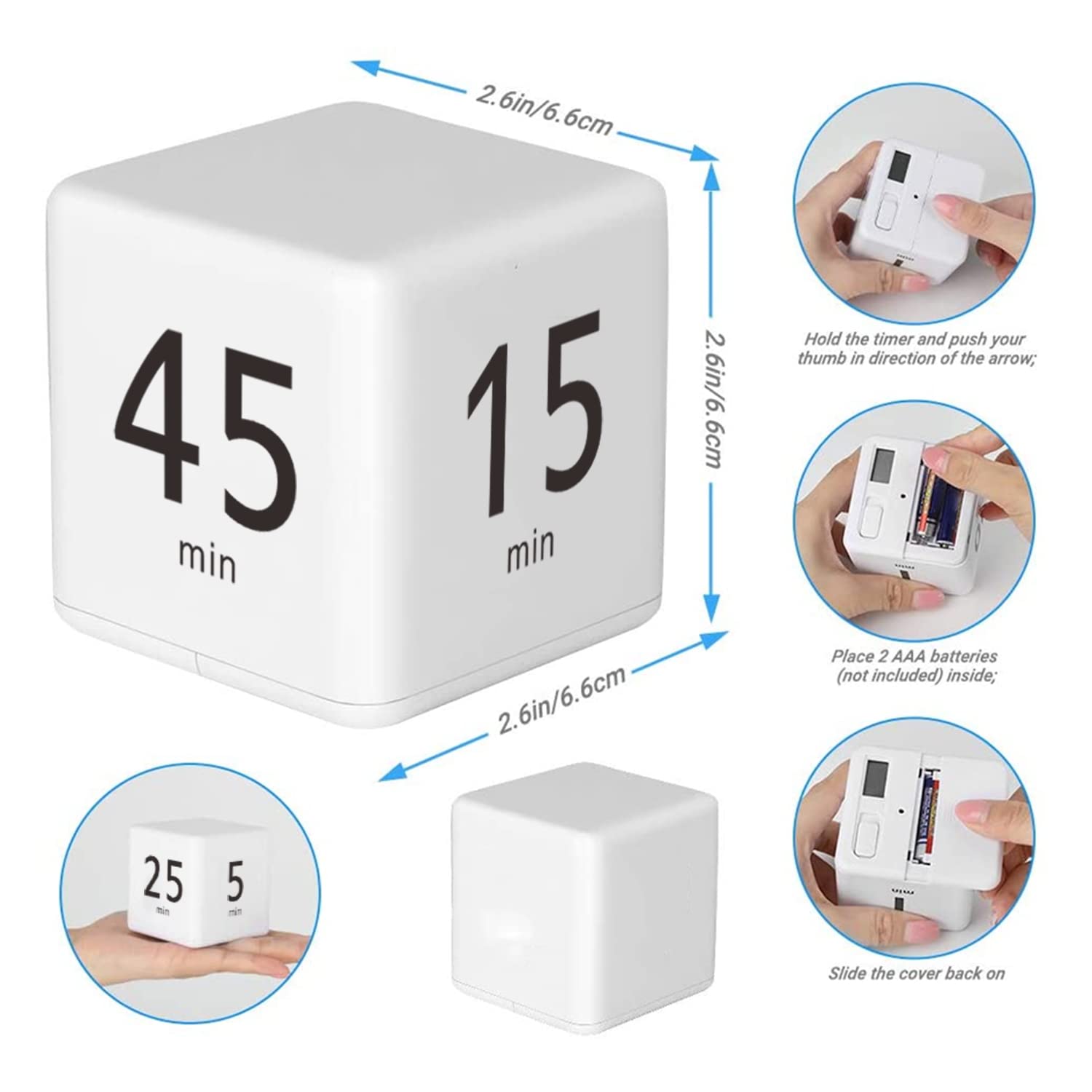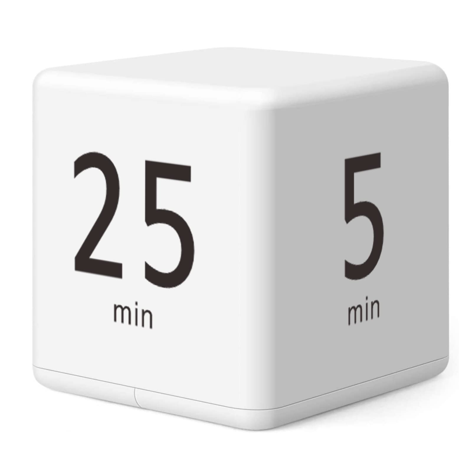 - Study and work efficientlyYou will receive 1 pieces cube kitchen timers of 25, 5, 45, 15 minutes (White).Study intensively for 25 minutes, rest for 5 minutes, and rest for 15 minutes after 4 cycles,reasonable time allocation makes your study and work more efficient.