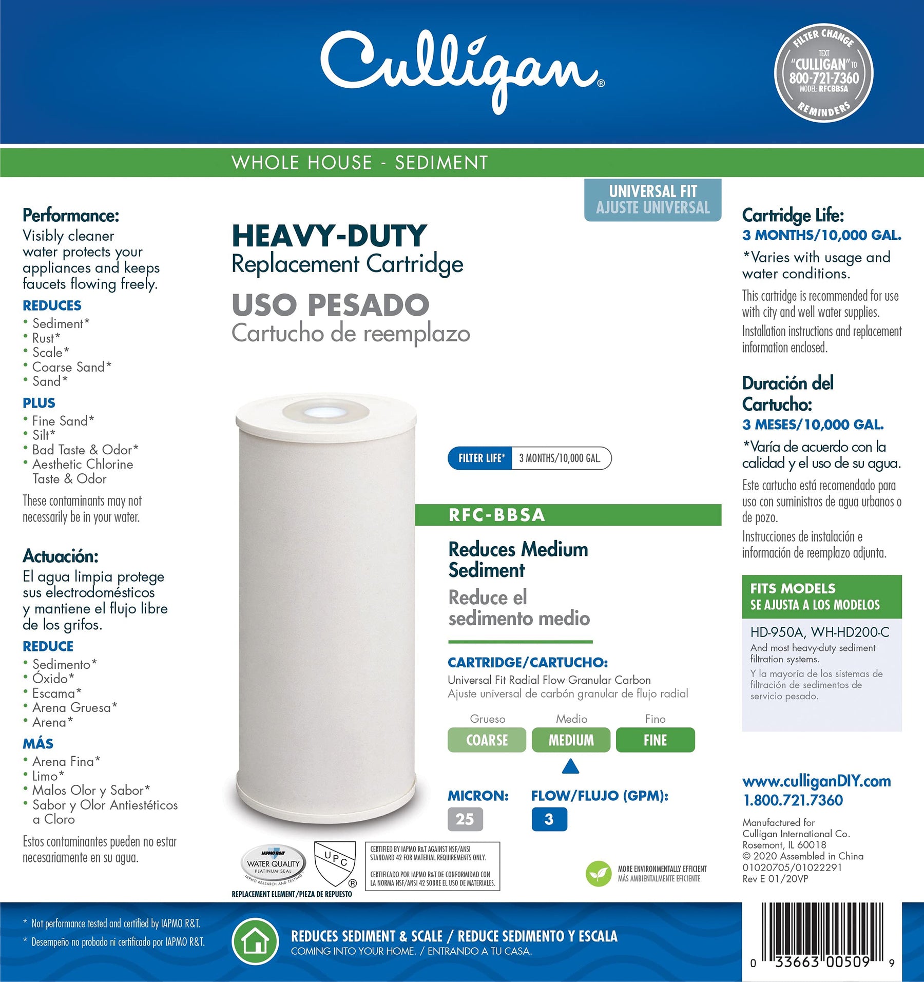 - Original Replacement Under-Sink Water Filters – RFC-BBSA 25 Micron Whole House Water Filter for Sediment, 10 x 4.5 Compatible Replacement for FXHTC, W50PEHD, GXWH40L, GXWH35F, GNWH38S, WFHD13001 (Pack of 1) by Culligan