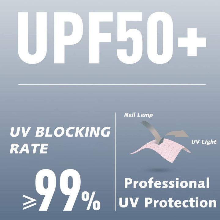- UPF 50+: Manicures gloves with the rating of UPF 50+ , UV isolation rate of more than 99%. This UV protection glove can protect your hands away from the heat of high power nail lamps and strong sunlight outdoors