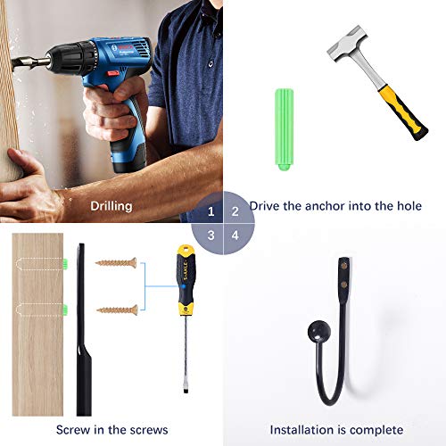 - SizeSet of 2, 6 in length, 2.8 in width, diameter of hook: 0.3. Coming with screws and anchors.