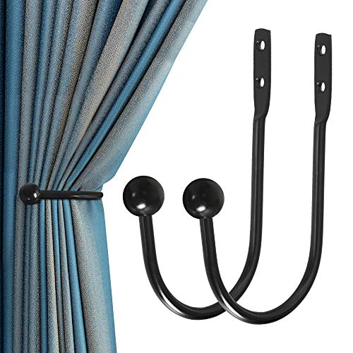 - Original Holdbacks – Curtain Holdback, 2 Pcs Wall Mounted Drapery Tiebacks with Screws, Heavy Duty Metal Decorative Window Drapery Holder Curtain Hook, Black by HEMOUR