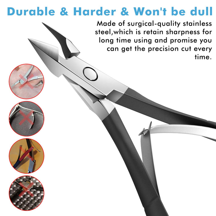 - Ergonomic Handle Design & Protective Plastic Tip - The black coating non-slip handle was ergonomically designed to fit in your palm comfortably,making the cuticle trimmer easy to hold and control and giving you the best possible range of motion for continuous use. Packaging includes a plastic tip to guard against accidental stabs to keep the instruments secured,guaranteeing their life span.
