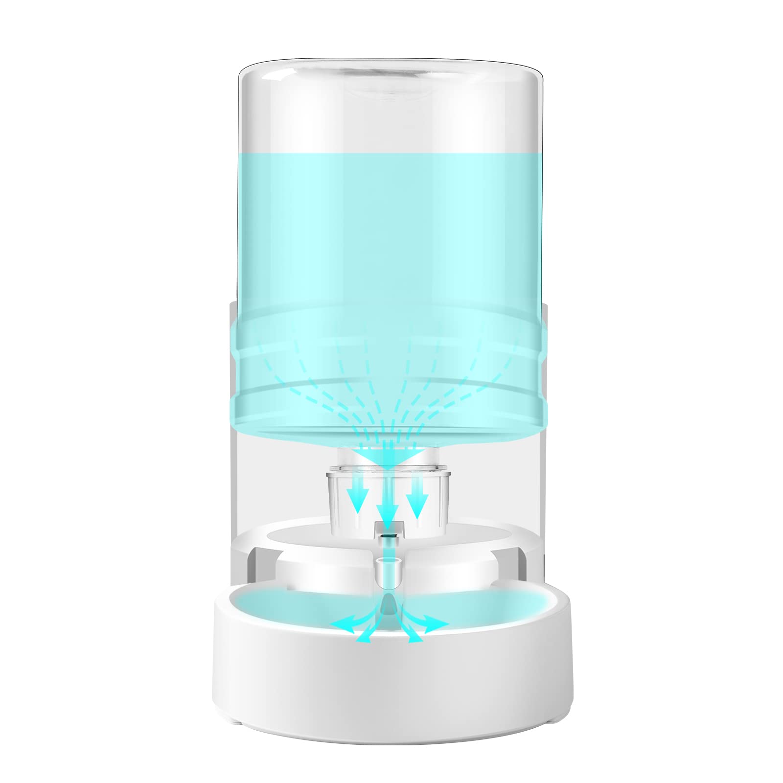 - [Automatic water replenishment] This pet water dispenser uses gravity to replenish water automatically. This allows your pet to enjoy fresh and clean water anytime.