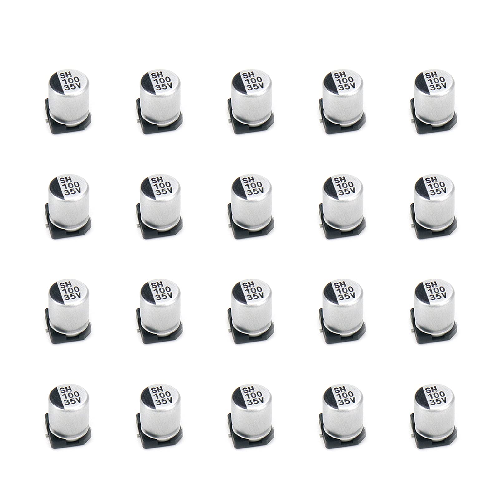 - Original Capacitors – 20Pcs SMD Aluminum Electrolytic Capacitors 100uF 35V by Dahszhi