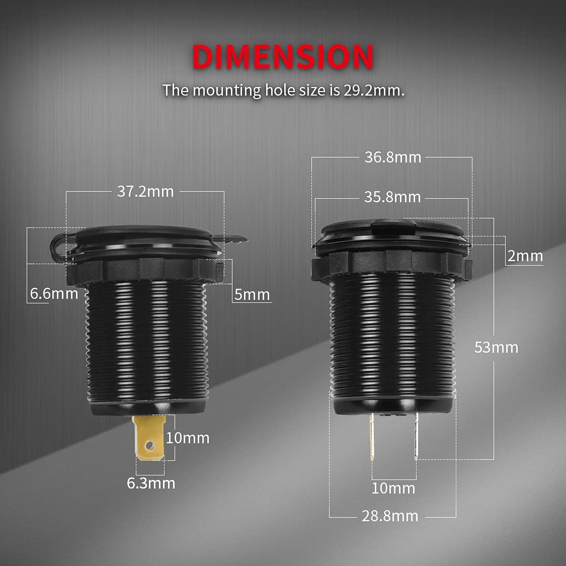 - Original Cigarette Lighters & Parts – DaierTek 12V Dual USB Charger Socket for Automotive Car Marine RV RZR Boat ATV Bus Truck, Quick Charge 3.0 Waterproof with Blue LED Voltmeter and Wire Fuse DIY Kit - 2pcs by DAIERTEK