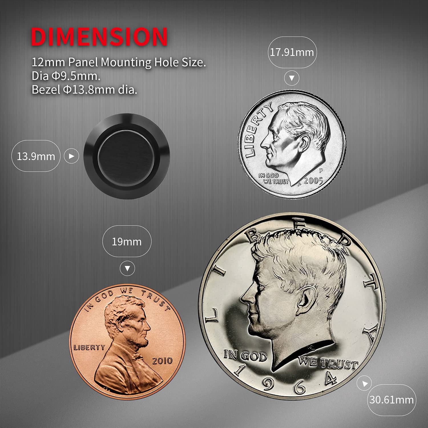 - Push Button Switch Dimension: This pushbutton requires 12mm (1/2'') Panel Mounting Hole Size. The 1.5mm Raised Button for easy operating.