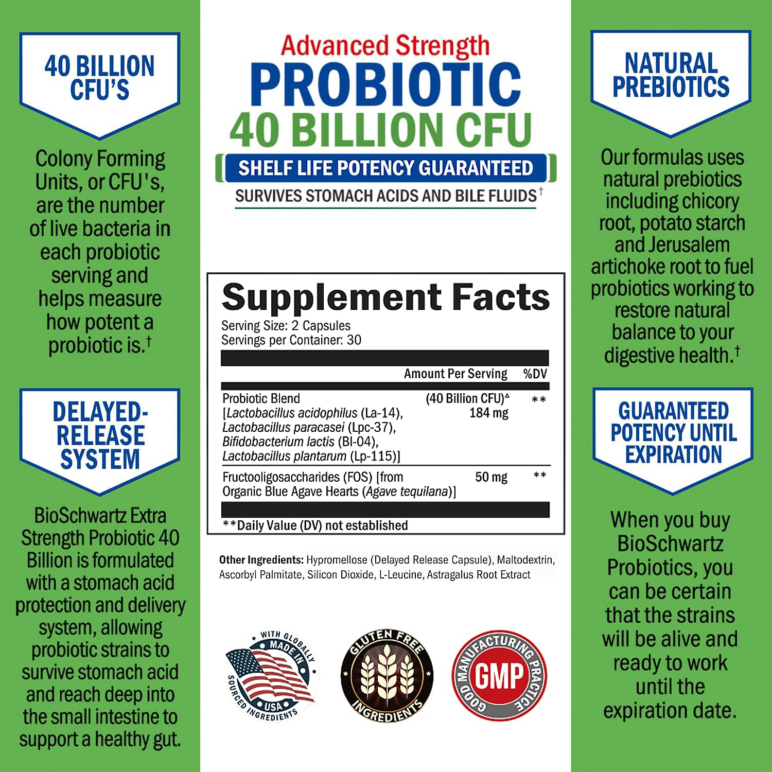 - Original Acidophilus – Daily Probiotic Supplement with 40 Billion CFU - Gut Health Complex with Astragalus and Lactobacillus Acidophilus Probiotic for Women and Men - Shelf Stable with Prebiotics for Digestive Health by BioSchwartz