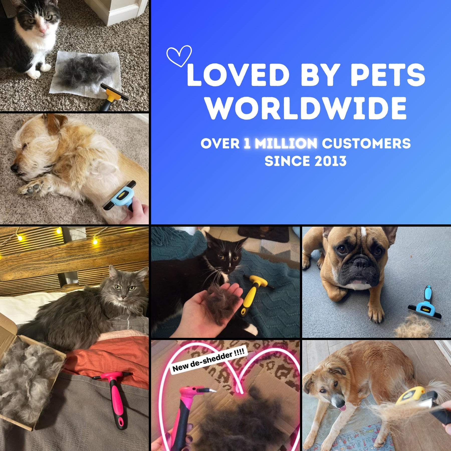 - OVER A MILLION UNITS SOLD WORLDWIDE! Trusted by countless happy customers to keep their furry friends looking and feeling their best. DakPets cat and dog deshedding brush gently yet firmly removes trapped hair, reducing shedding by up to 95% in just 10 minutes. Our 4-inch cat and dog hair remover can be used on short and long-haired dogs and cats of any size, making it a convenient solution for all your pets.