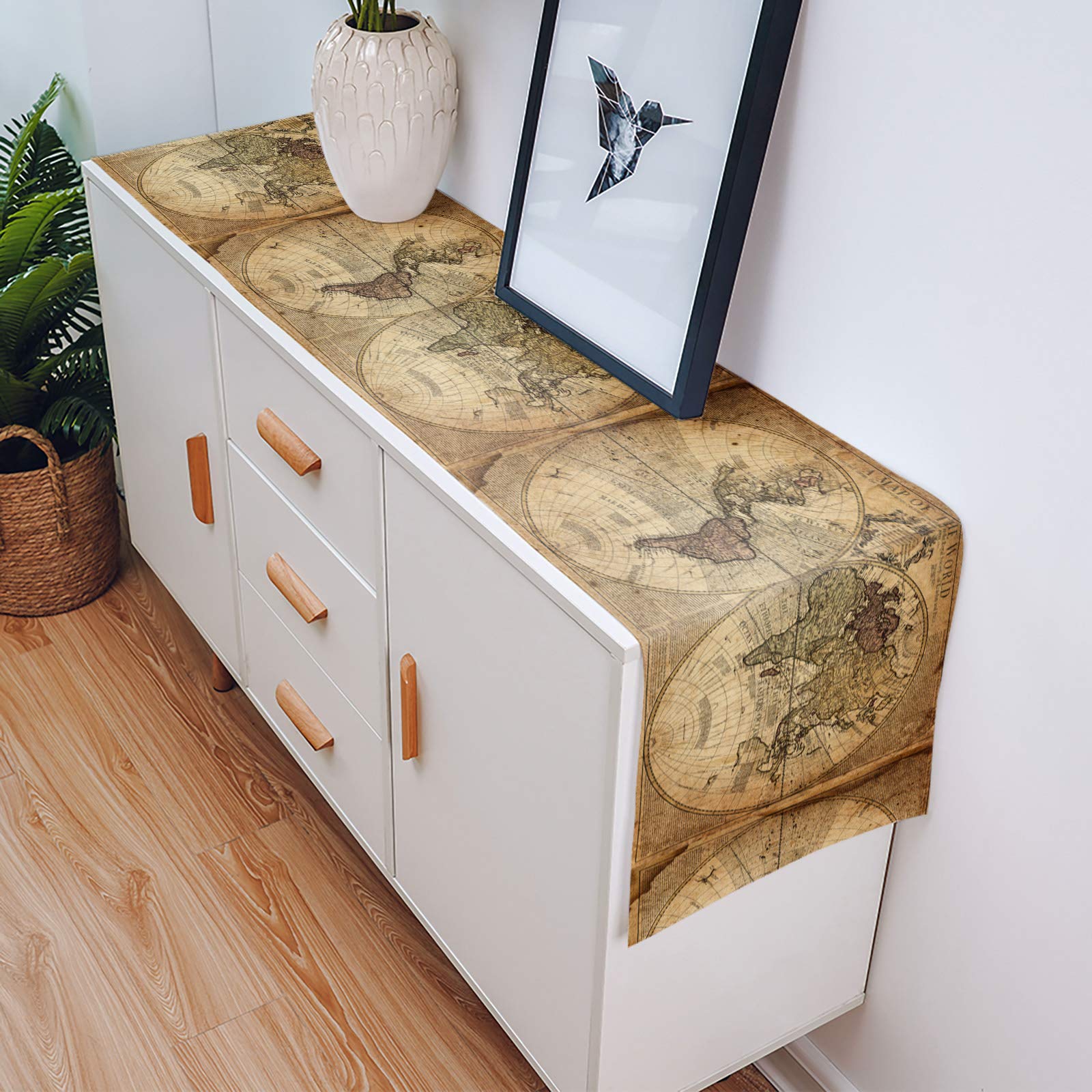 - Original – , 13 x 36 In Table Runner CottonPolyester Blend, Vintage Retro Nautical Map of World Table Runner, 1 Pack, 20210609CXMRUNNERSLSZ00516ZQDHDLG by Daleng