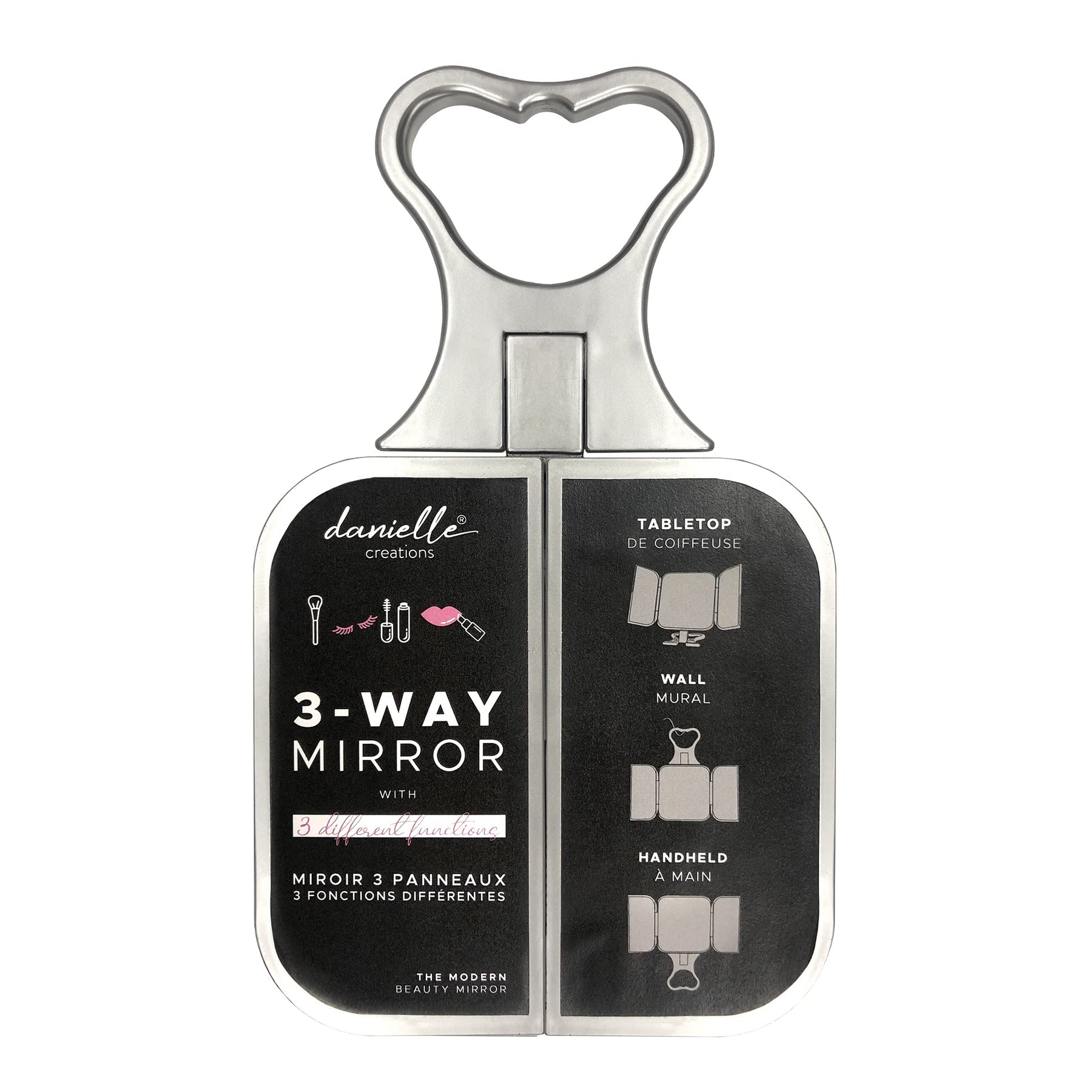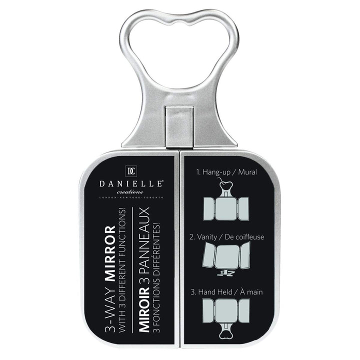 - Original Makeup Mirrors – Creations 3-Way Foldable Travel Makeup Mirror with Built in Stand and Handle, Silver by Danielle