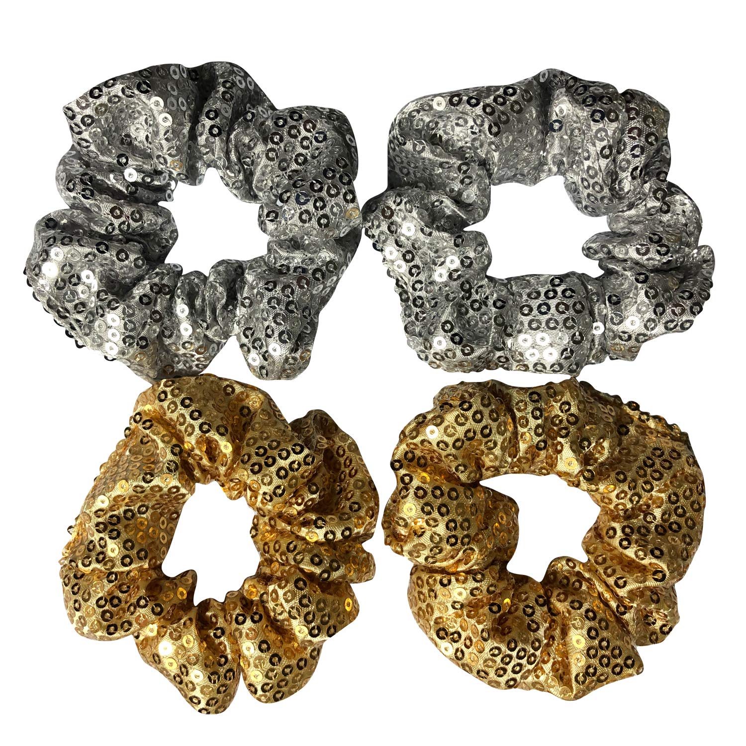 - Original Bands – 4 Pack Gold and Silver Metallic Sequin Elastic Hair Scrunchies Mermaid Bobbles Hair Ties Hair Rope Wrist Scrunchy Hair Bands for Show Party School Women Girls by DAONACO