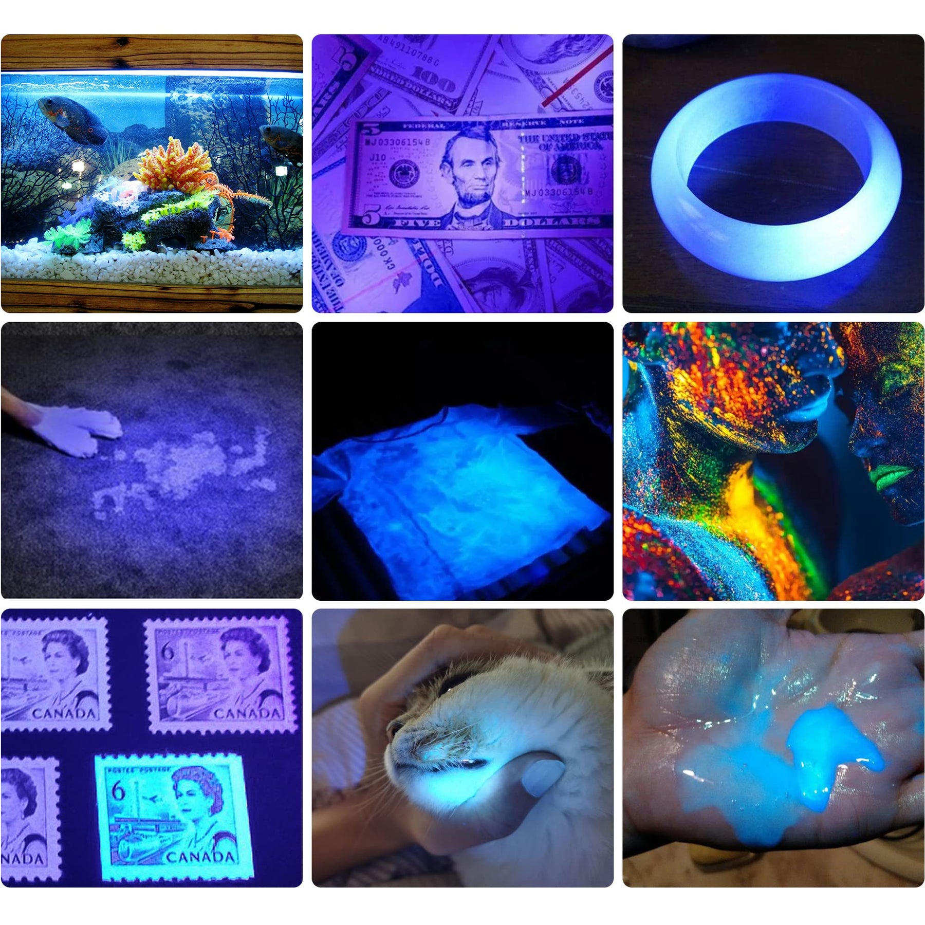 | recommended uses for product | Pet urine detection, Stain revelation, Fluorescent agent identification, Resin curing, Security code and document verification, Jewelry detection, Amber detection, Party or Halloween decoration |