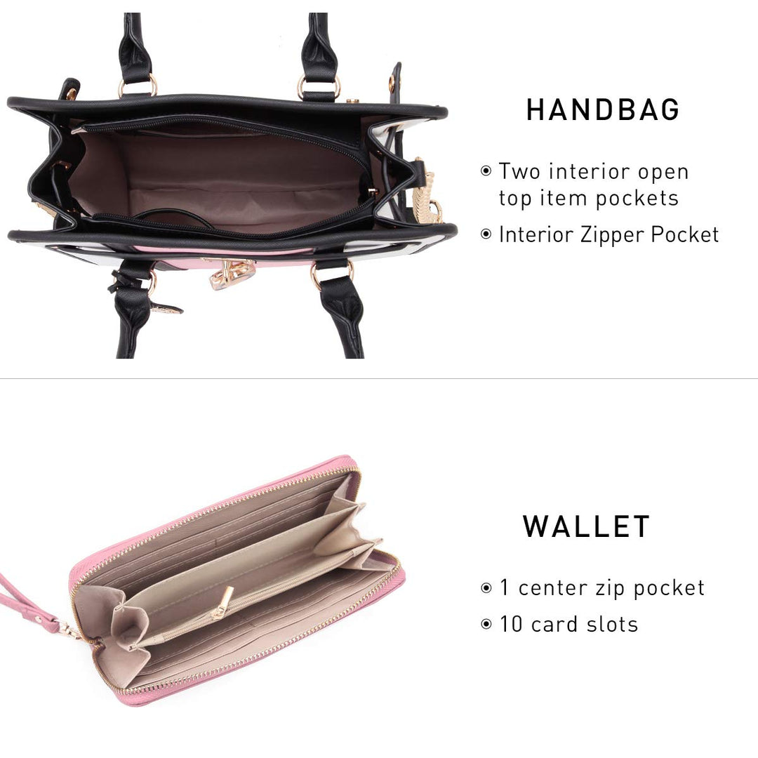 - Fashion Designed: The two-tone satchel handbags with fashion padlock features 1 main zipper pocket that contains 1 zip pocket + 2 slip pockets. Top zipper closure ensures the safety of personal items. 2 back wall snaps (closed for a more structured shape or opened for a wider opening and easier access).