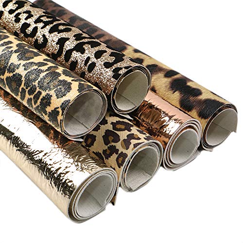- Leopard Series Leather BundlesYou will get 2pcs printed leoprad faux leather sheets; 2pcs metallic burst crack leather sheets;1 fine glitter leopard leather sheet and 1 velvet glitter leopard leather sheet; totally 6pcs classic leopard pattern leather sheets assorted, which makes your DIY projects more stylish and attractive