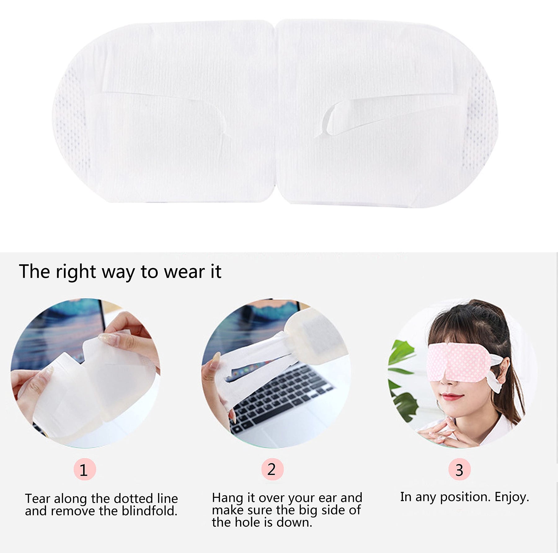 - Scope Of ApplicationThis steam eye mask can be used for dry eyes and tired eyes,blepharitis,styes,dark circles,puffy eyes. For easier sleep and better sleep quality, you can use This Heating Sleep eye Mask before going to bed. Wearing this disposable heated eye mask after work can relieve your tired eyes and relax yourself.