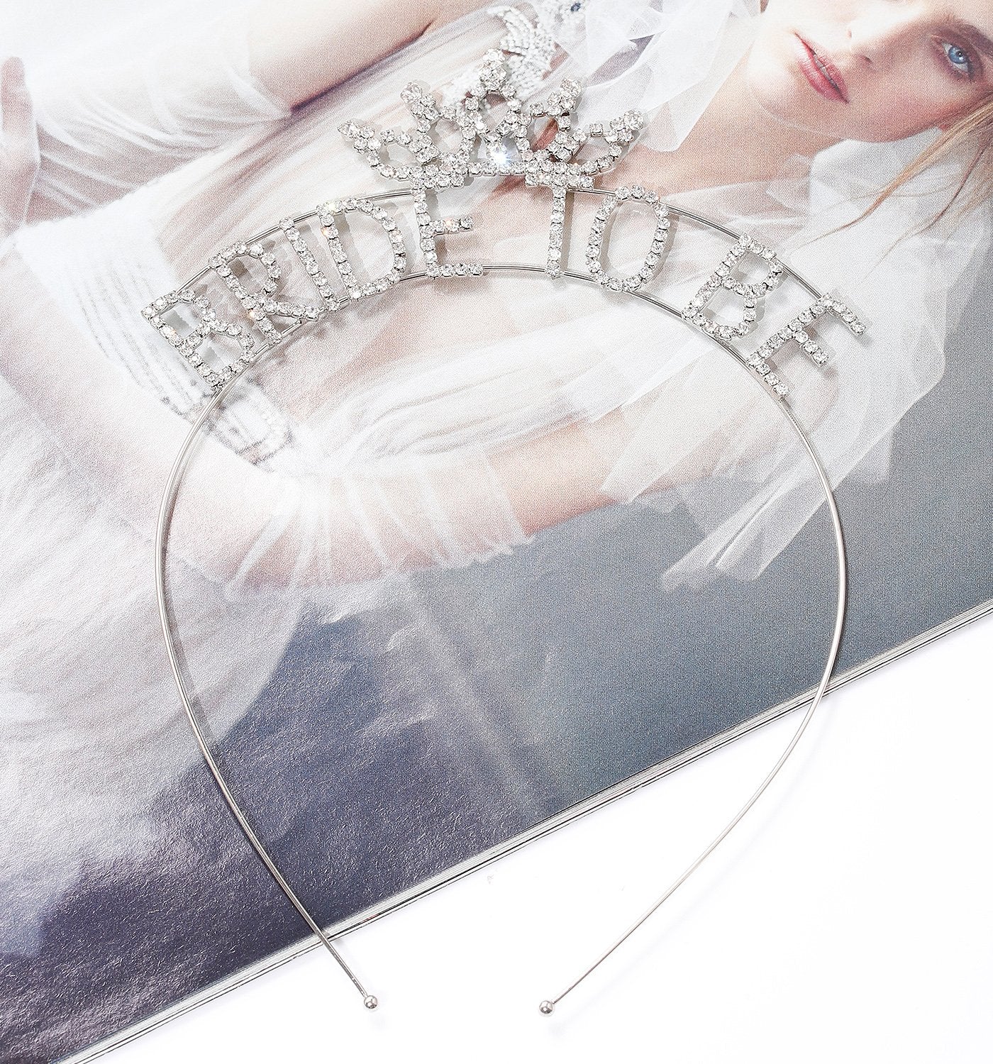 - These bachelorette headband features a skinny metal band with letters on top spelling bride decorated with sparkling crystal rhinestone. Every bride needs one of these to wear during the bridal shower. The bride will love it making the occassion even more fun