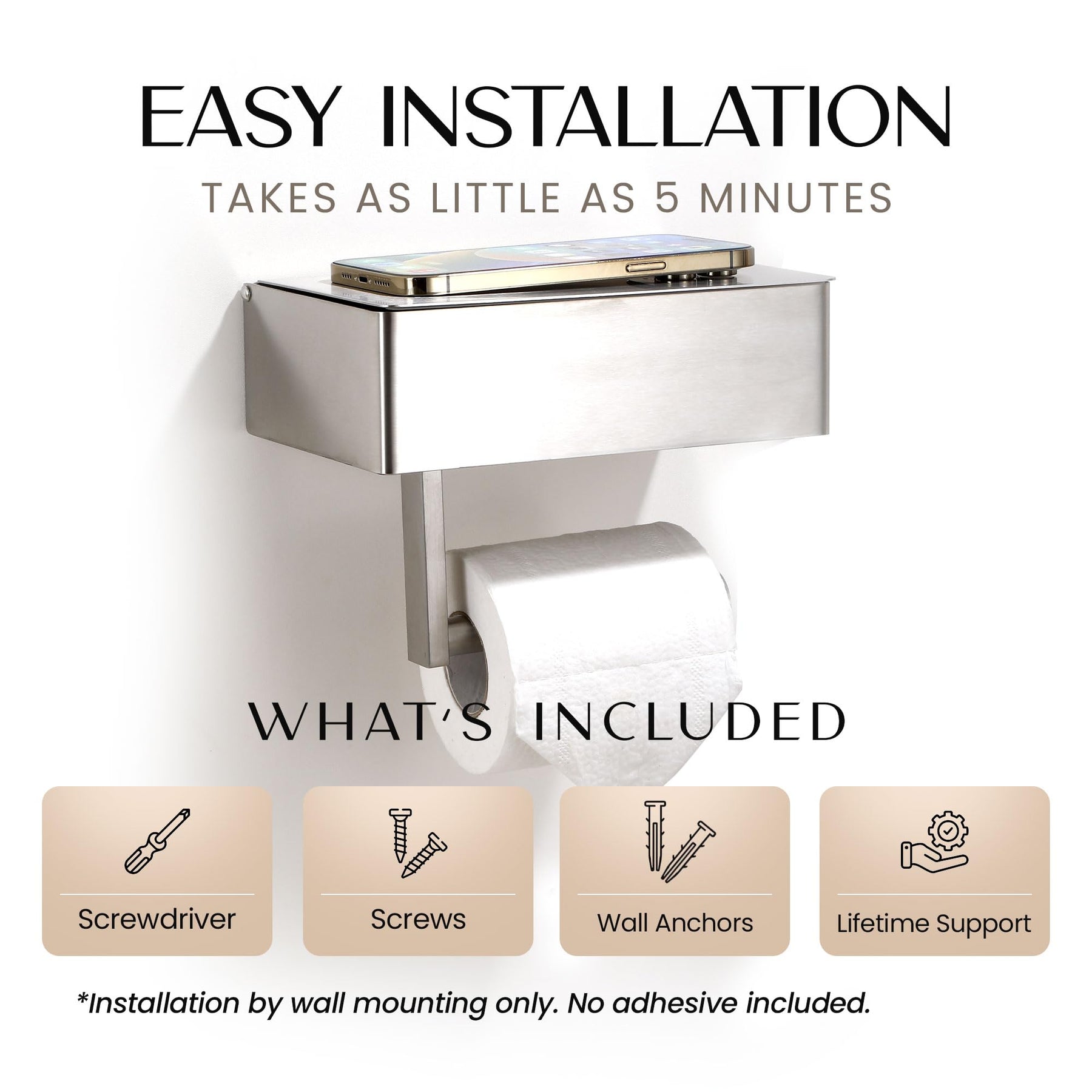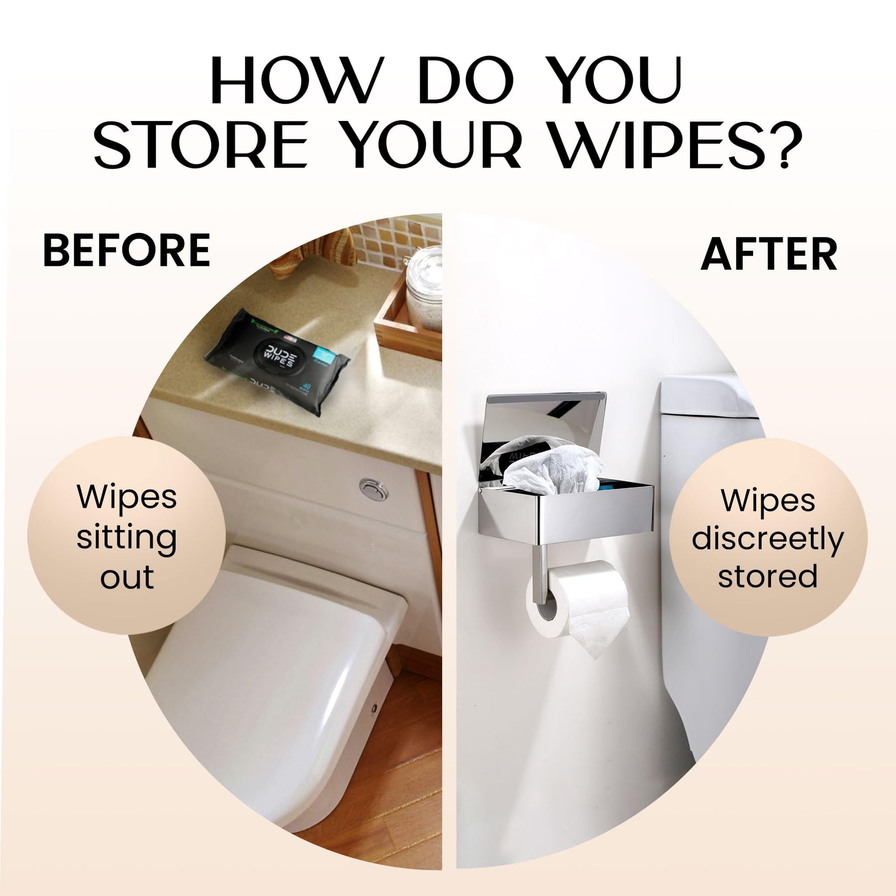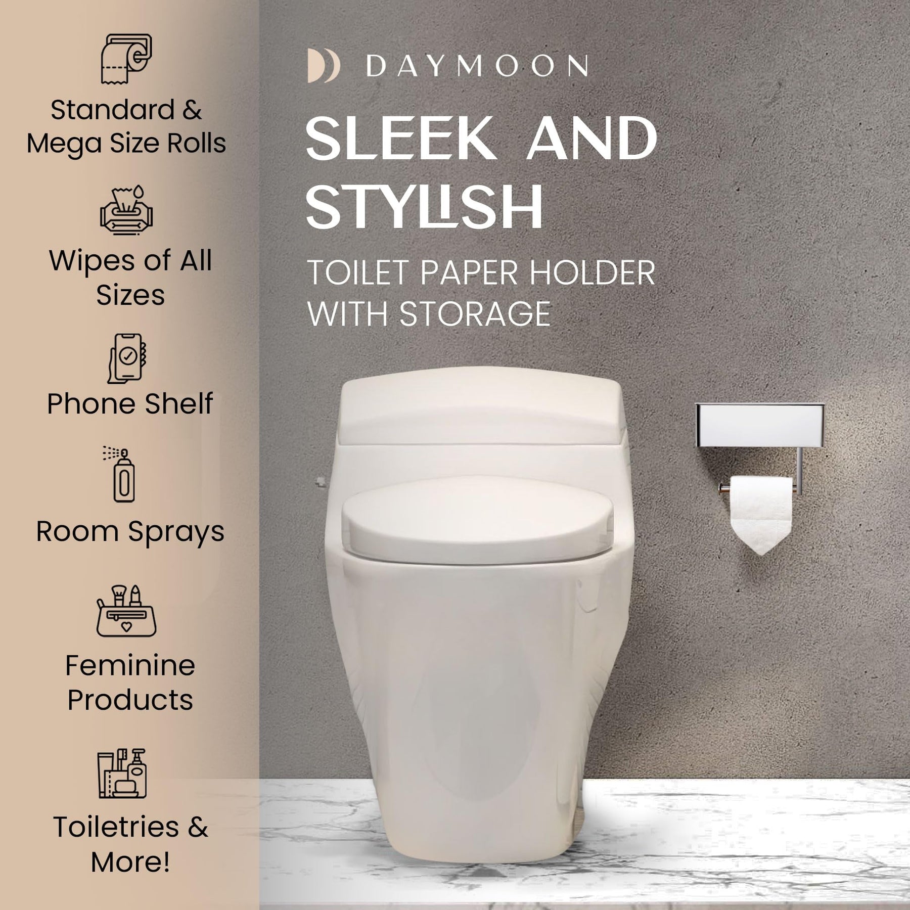 - Original Toilet Paper Holders – Day Moon™ Chrome Toilet Paper Holder with Shelf - Wipe Holder for Bathroom, Flushable Wipes Dispenser, Toilet Paper and Wipes Holder - Toilet Paper Holder with Storage, Toilet Paper Holder Wall Mount by Day Moon Designs