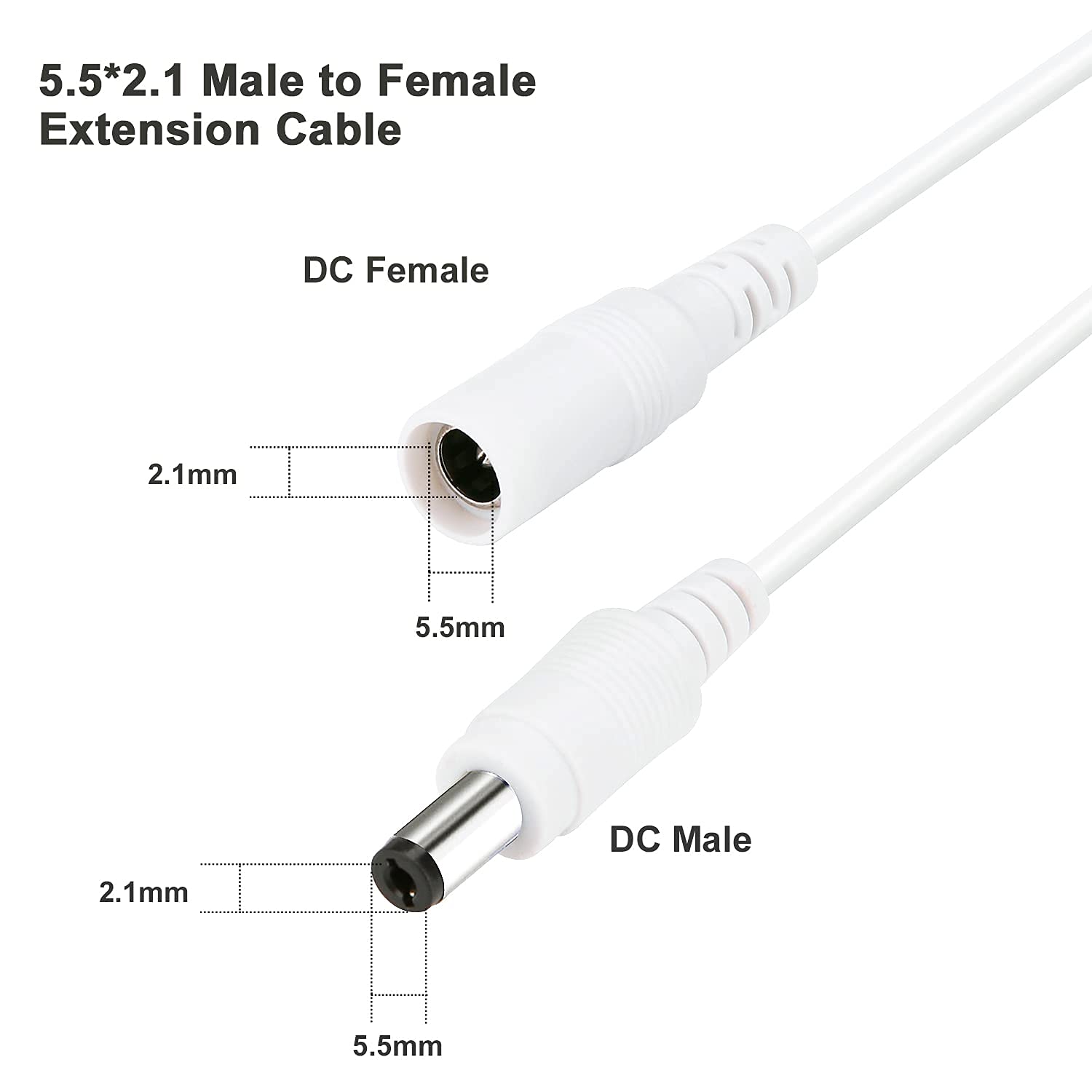 - Suitable Device, This power extension cable only available for power supplies and equipment with connector size of 5.5x2.1mm. Please check that your power supply and equipment are in compliance Suitable for Security Camera, LED lights, printers, routers, cars, sensors and so on, Don't work with other size